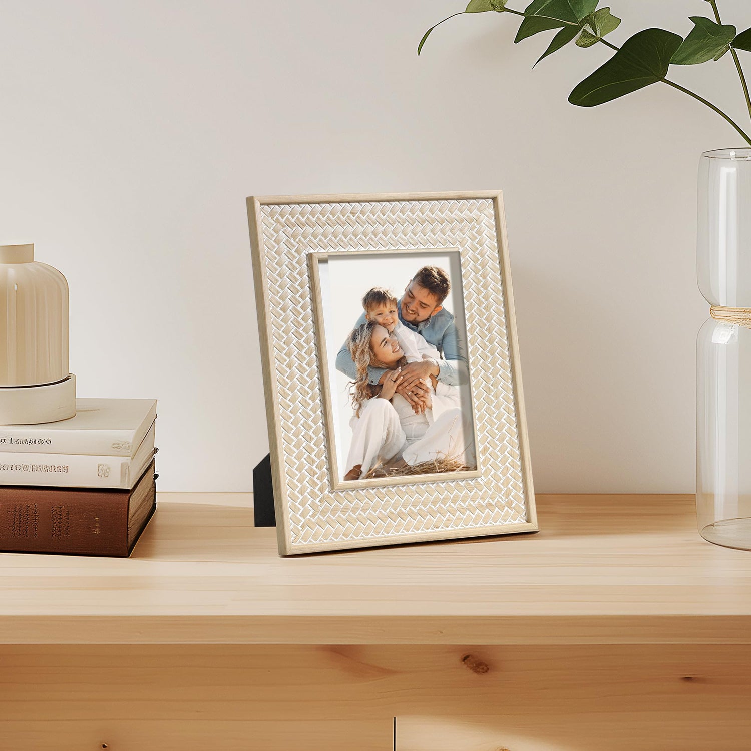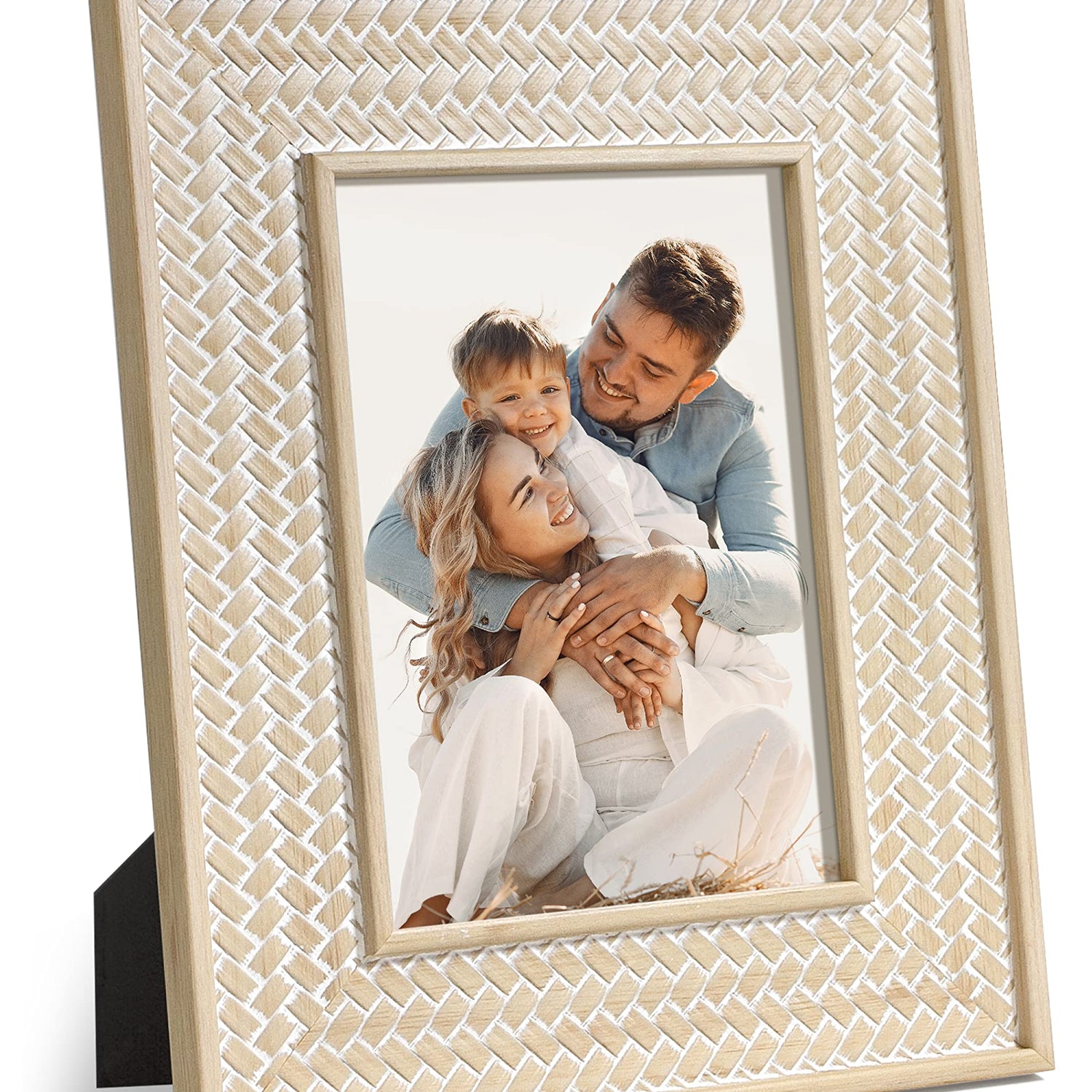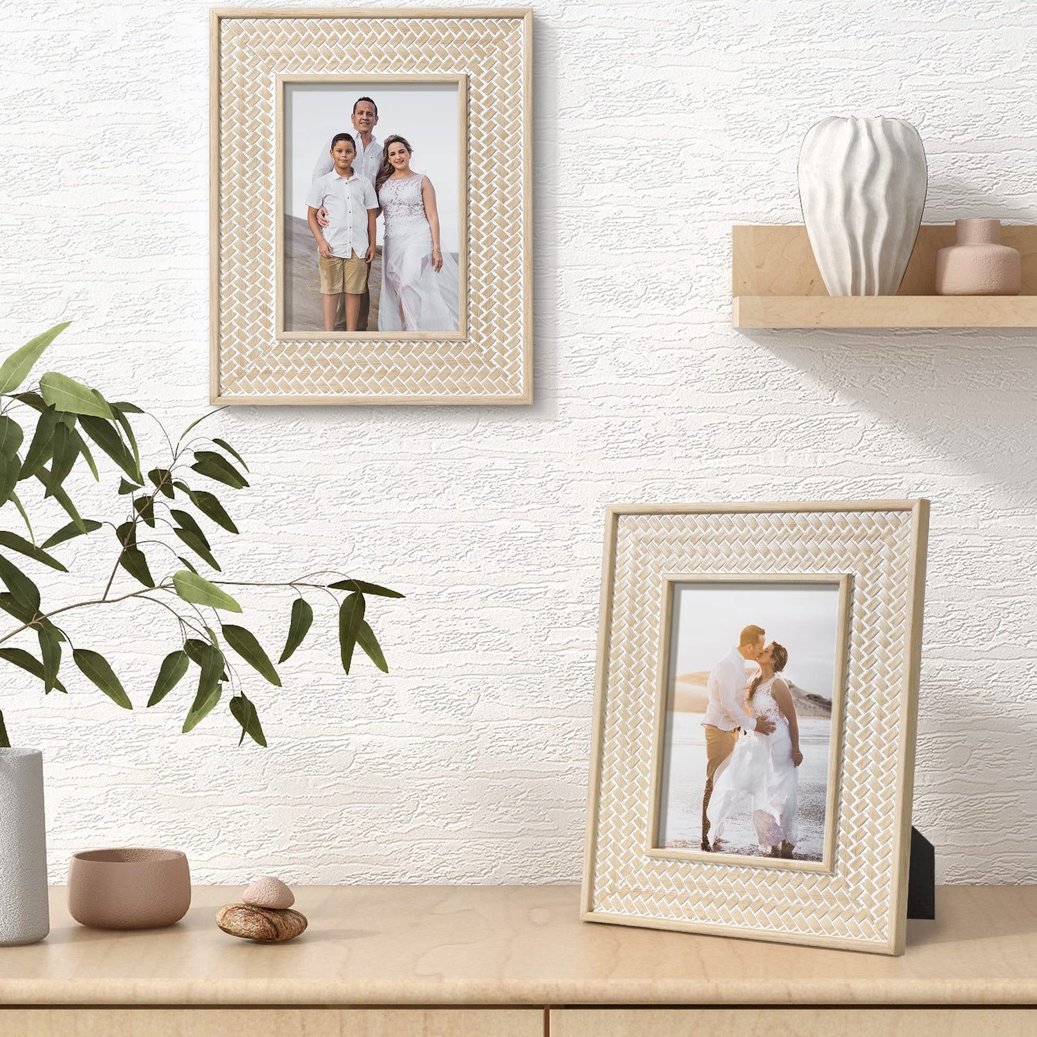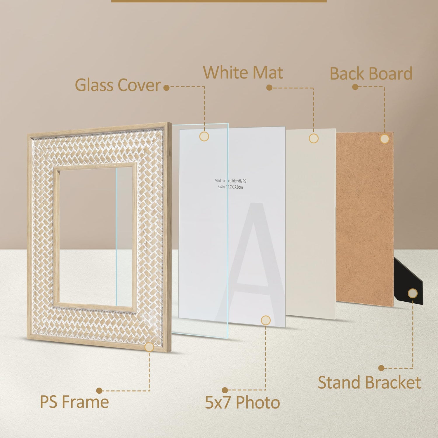 Afuly 5x7 Picture Frame Natural Boho Picture Frames Beige Chic Bohemian Photo Frame Desk Picture Frames for Wall Hangings Home Decor, Wedding Gifts for Couple Grandma Mom Women