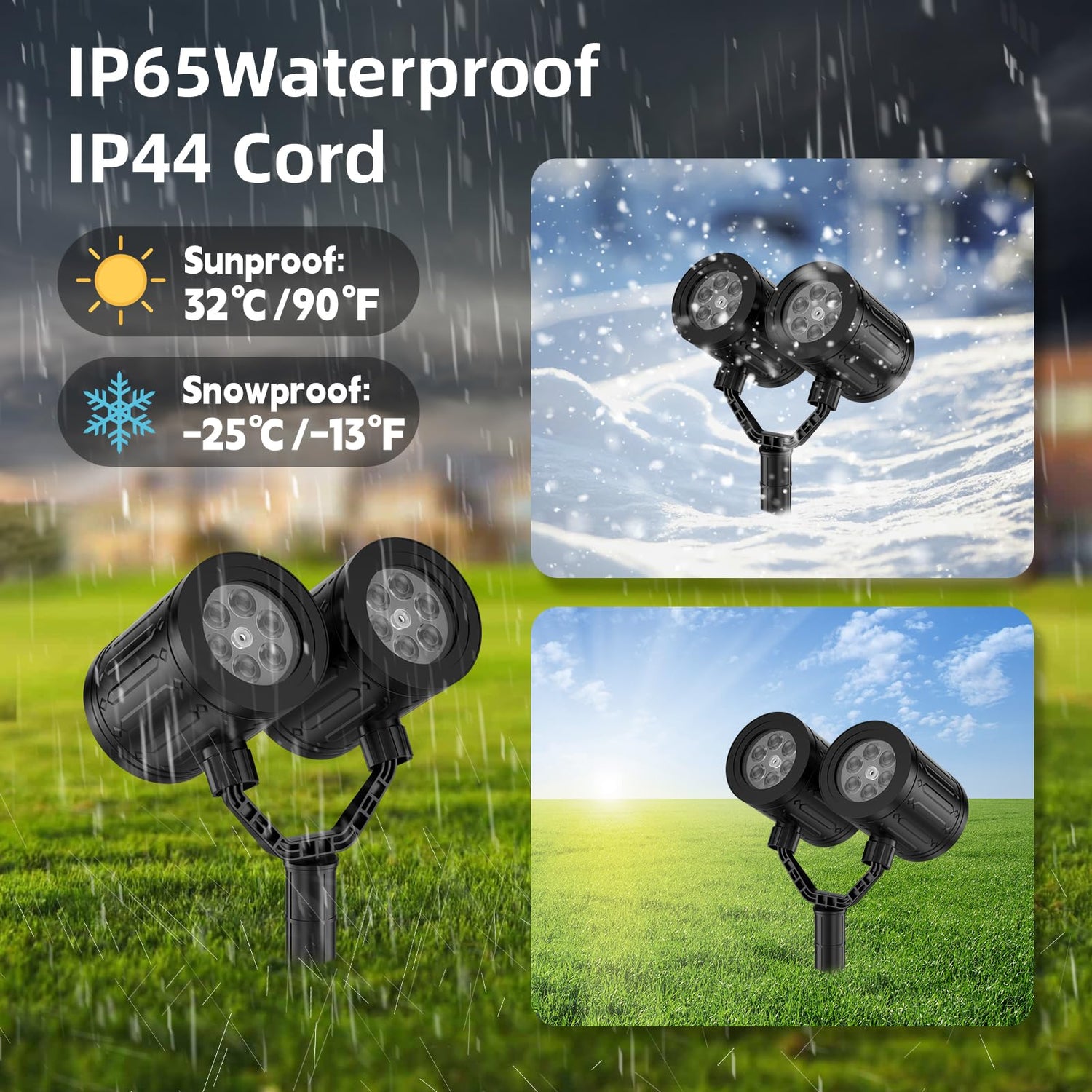 - Double Head Snowfall Lights for Christmas:This Christmas-themed double-head snowflake projector will cast 4 different dynamic snowflakes, and get white Christmas on your home each night. Once you turn on the snowflake lights, you and your family will enjoy a near-realistic snow scene. Our dual projector lights are brighter and have more coverage in snow scenes. The snowflake motion pattern is perfect for Christmas