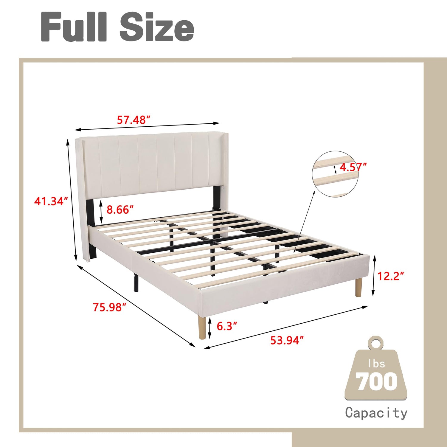 AGARTT Upholstered Platform Bed Frame Full Size with Headboard and Footboard/Wooden Slats Support/No Box Spring Needed/Easy Assembly, Beige Velvet