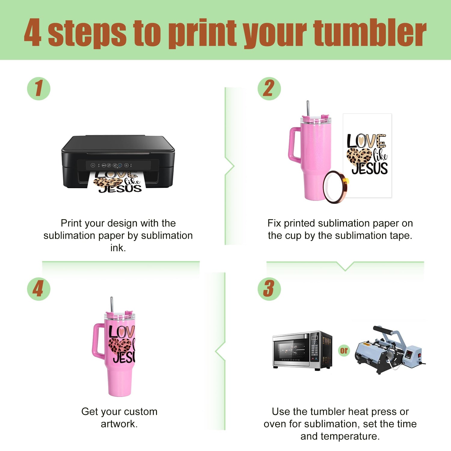 - PRINTING METHOD: It is recommended to 356 F & 50 S for tumbler heat press. It is recommended to 356 F & 6 minutes for oven.