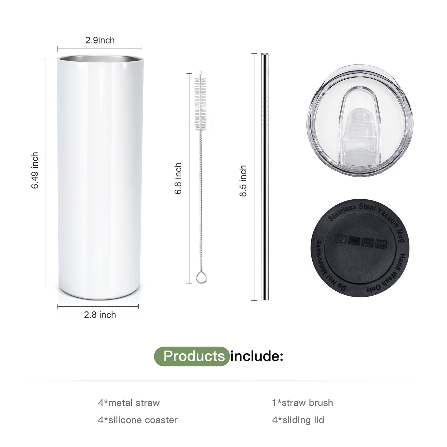 - DESIGN YOURSELF:Sublimation tumblers is painted by a layer of quality sublimation coating,the sublimation blank skinny tumblers allow you to design exquisite cups in your own style.It's ready for sublimation,with quality coating,meanwhile the printed color comes out bright not foggy,which is different from the other ordinary white tumblers.If you want to DIY your own tumbler,this is a great choice.