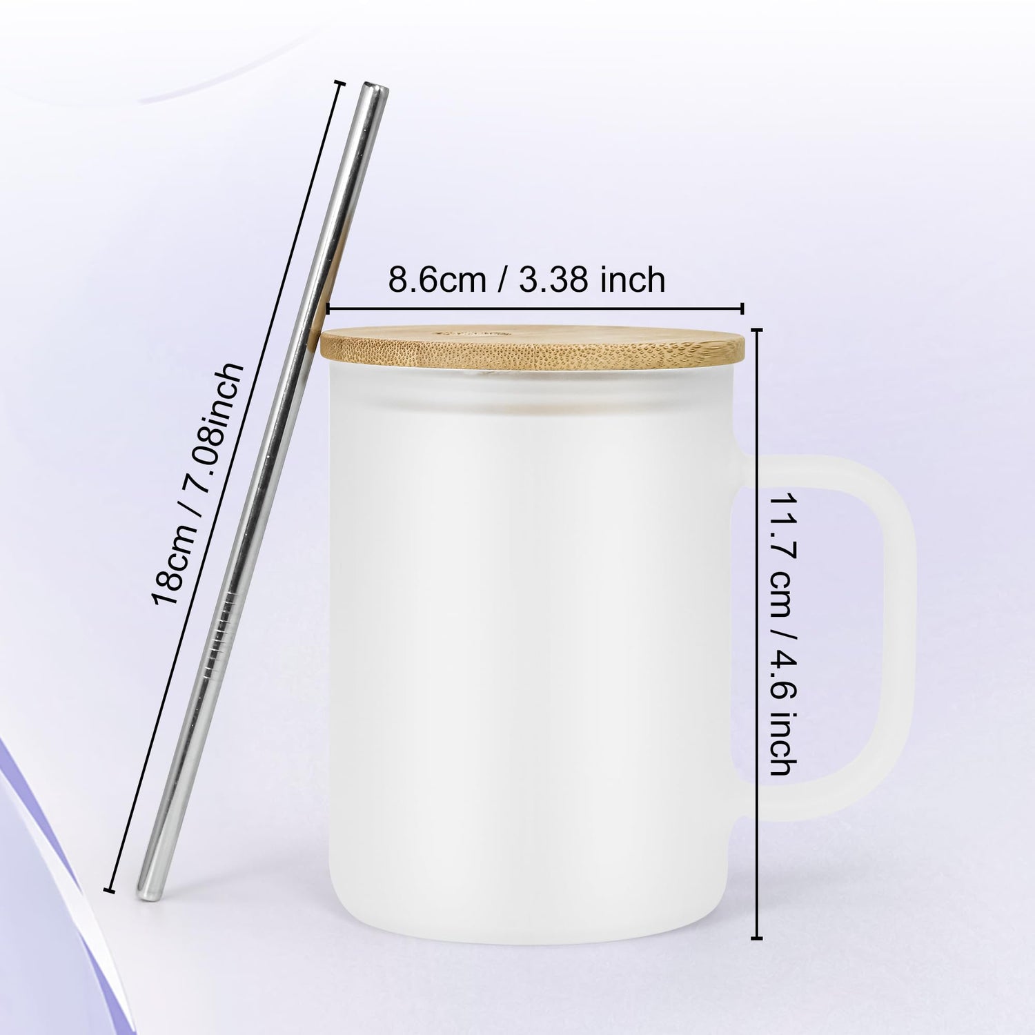 - THE PRODUCT SPECIFICATIONS: The frosted sublimation glass cups glass is 16 oz about 450ml, and the stainless steel straw is 18cm/7inch.
