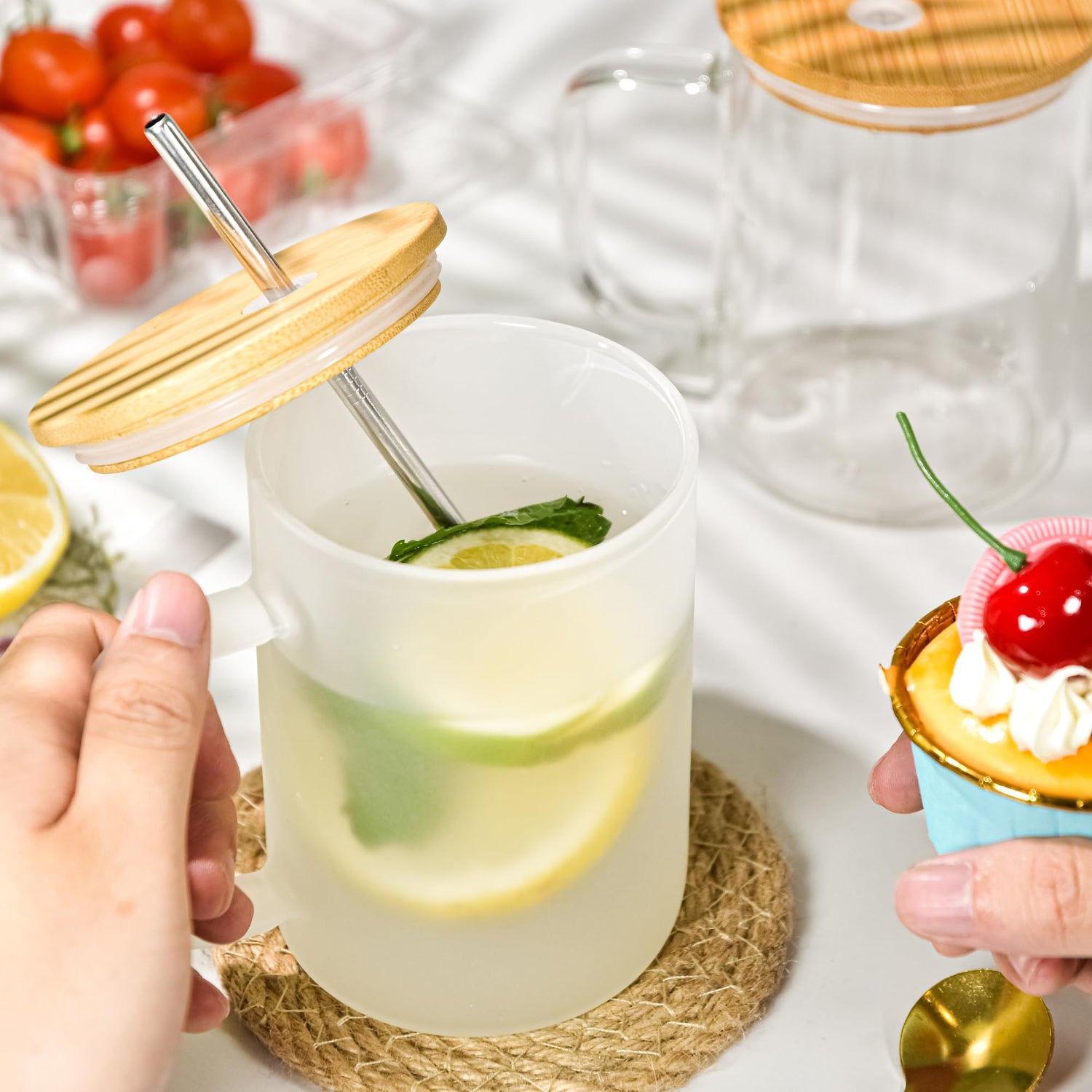 AGH 6 Pack Sublimation Glass Cups with Handles, 16oz Frosted Sublimation Blanks with Bamboo Lid and Stainless Steel Straw, Sublimation Mugs Tumbler