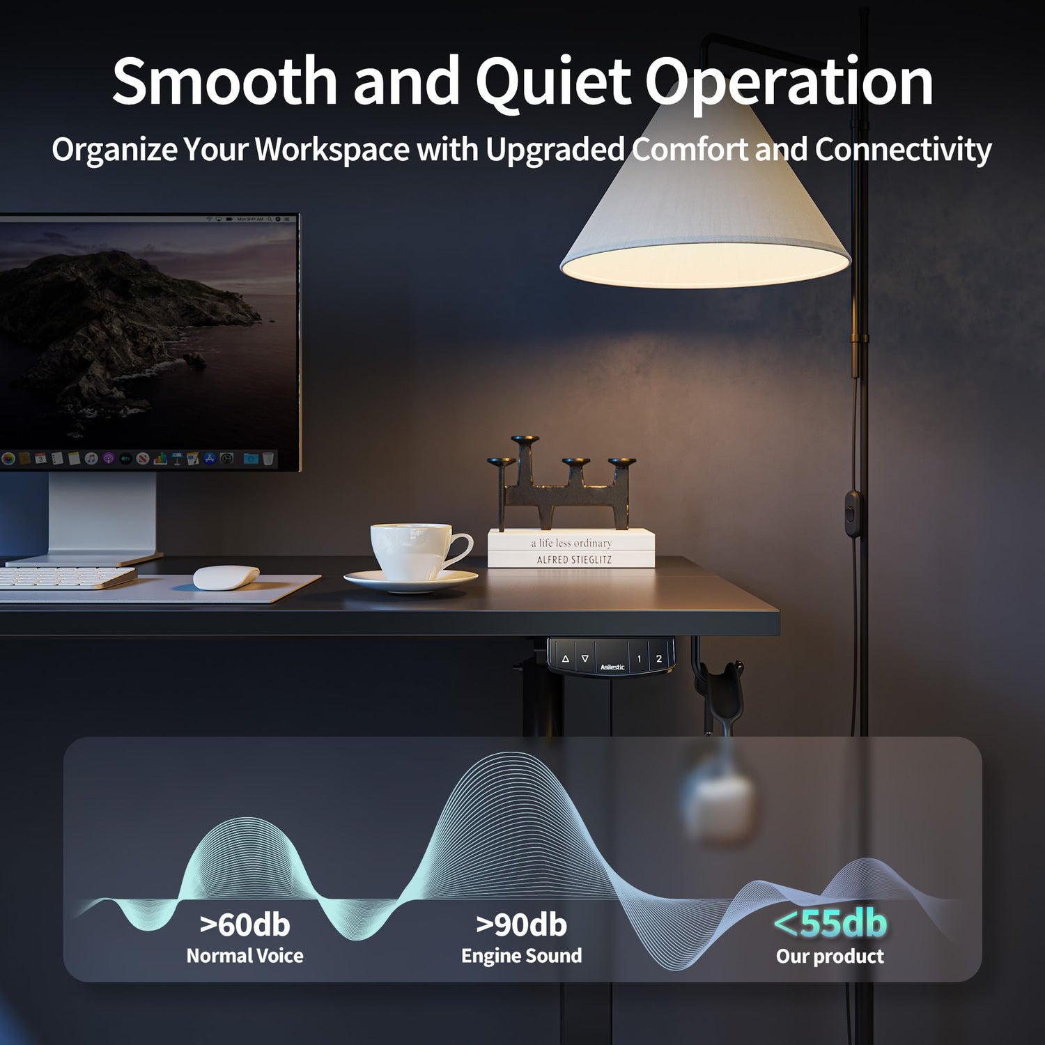 - 【Electric Lifting System】Agilestic standing desk has an advanced motor that can support height adjustment between 28.3''-45.7'' with low noise(under 55 dB) while running. You can customize the desired height and record it using 2 memory keys.