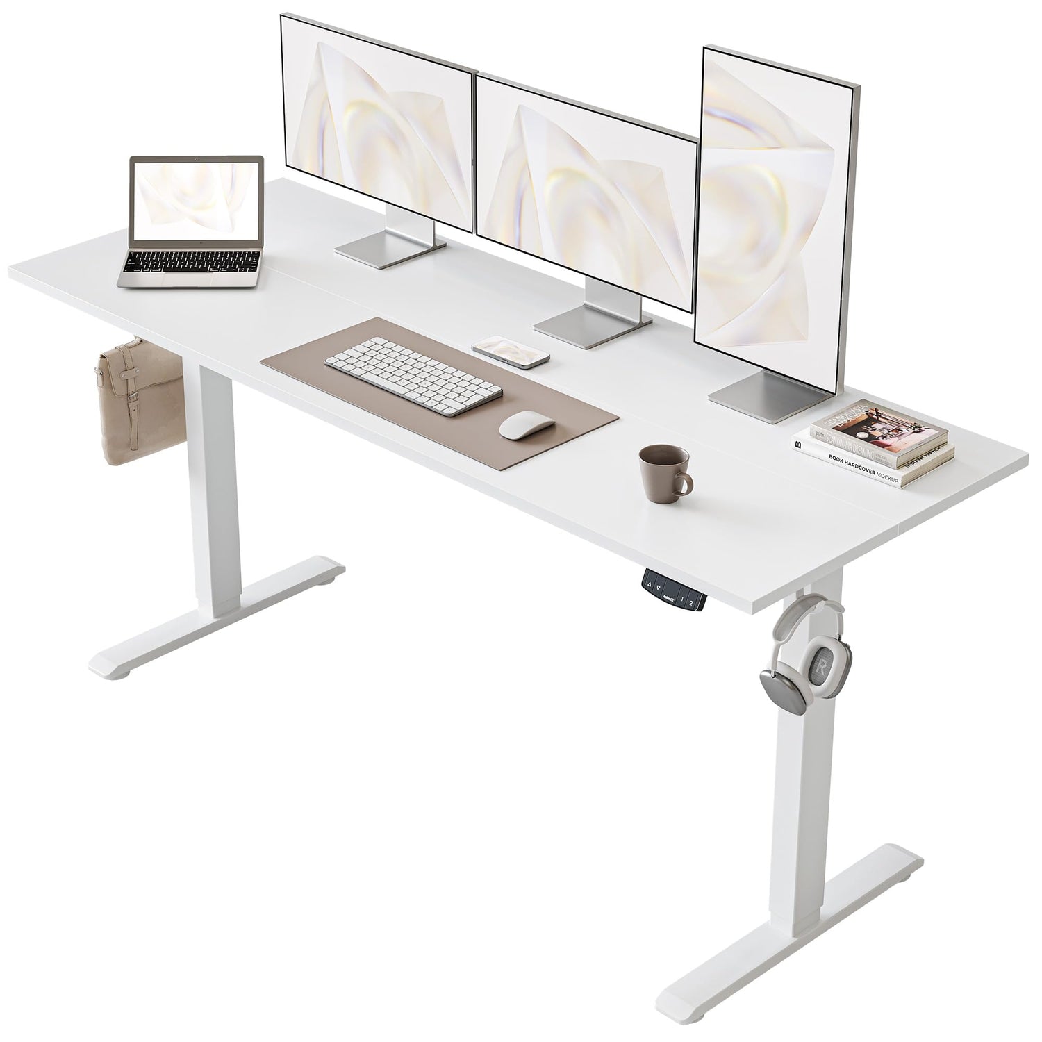 Agilestic Electric Standing Desk, Large 60 x 24 Inches Height Adjustable Desk, Sit Stand up Desk for Work Office Home, Ergonomic Rising Computer Table with Memory Preset, White