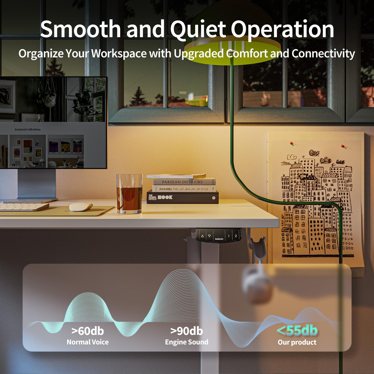 - 【Electric Lifting System】Agilestic standing desk has an advanced motor that can support height adjustment between 28.3''-45.7'' with low noise(under 55 dB) while running. You can customize the desired height and record it using 2 memory keys.