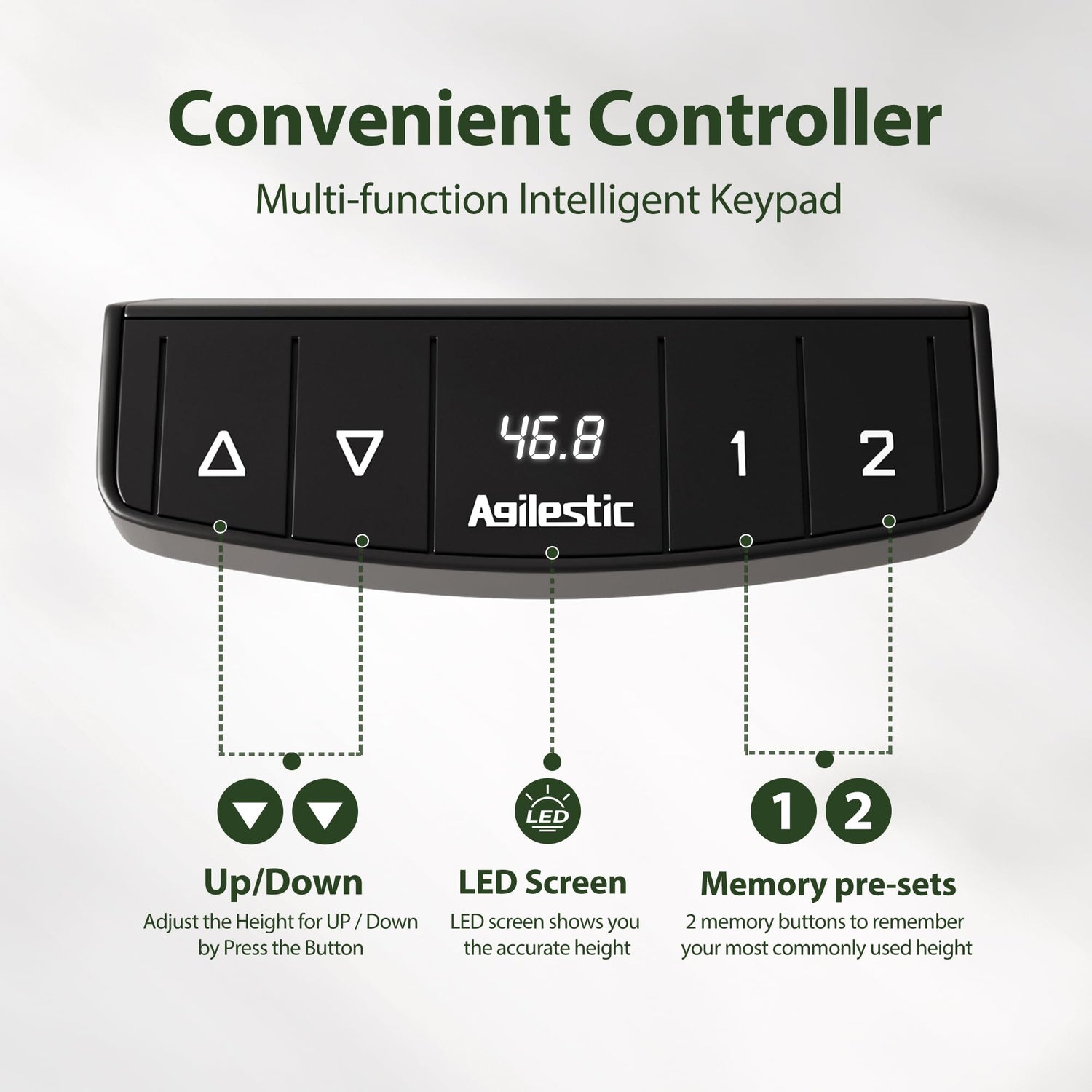 - 【Electric Lifting System】Agilestic standing desk has an advanced motor that can support height adjustment between 28.3''-45.7'' with low noise(under 55 dB) while running. You can customize the desired height and record it using 2 memory keys.