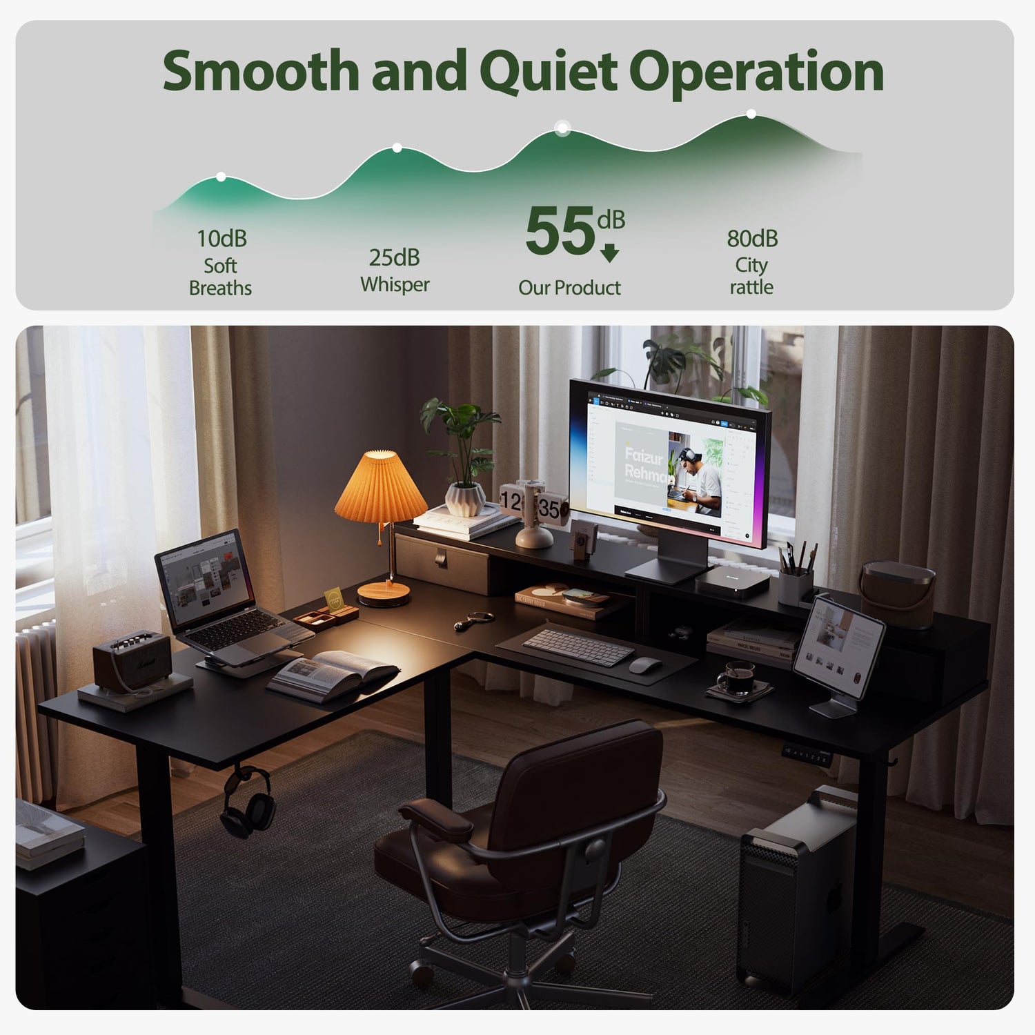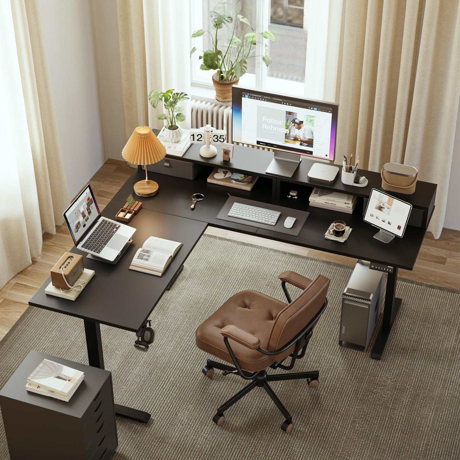 Agilestic L Shaped Electric Standing Desk with 2 Drawers, 63 Inch Ergonomic Adjustable Height Desk with Storage, Corner Desk Sit Stand up Computer Table for Work Office Home, Black