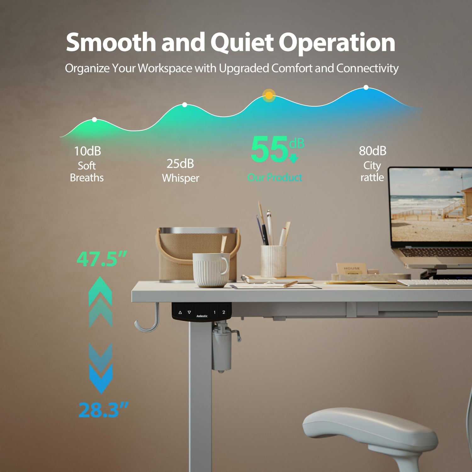 - 【Agile and Stable Lift System】 Equipped with an intelligent electric lifting system, this desk ensures smooth and swift adjustments. The sturdy steel frame supports up to 154 lbs and features a motor tested over 50,000 times for reliable long-term use.