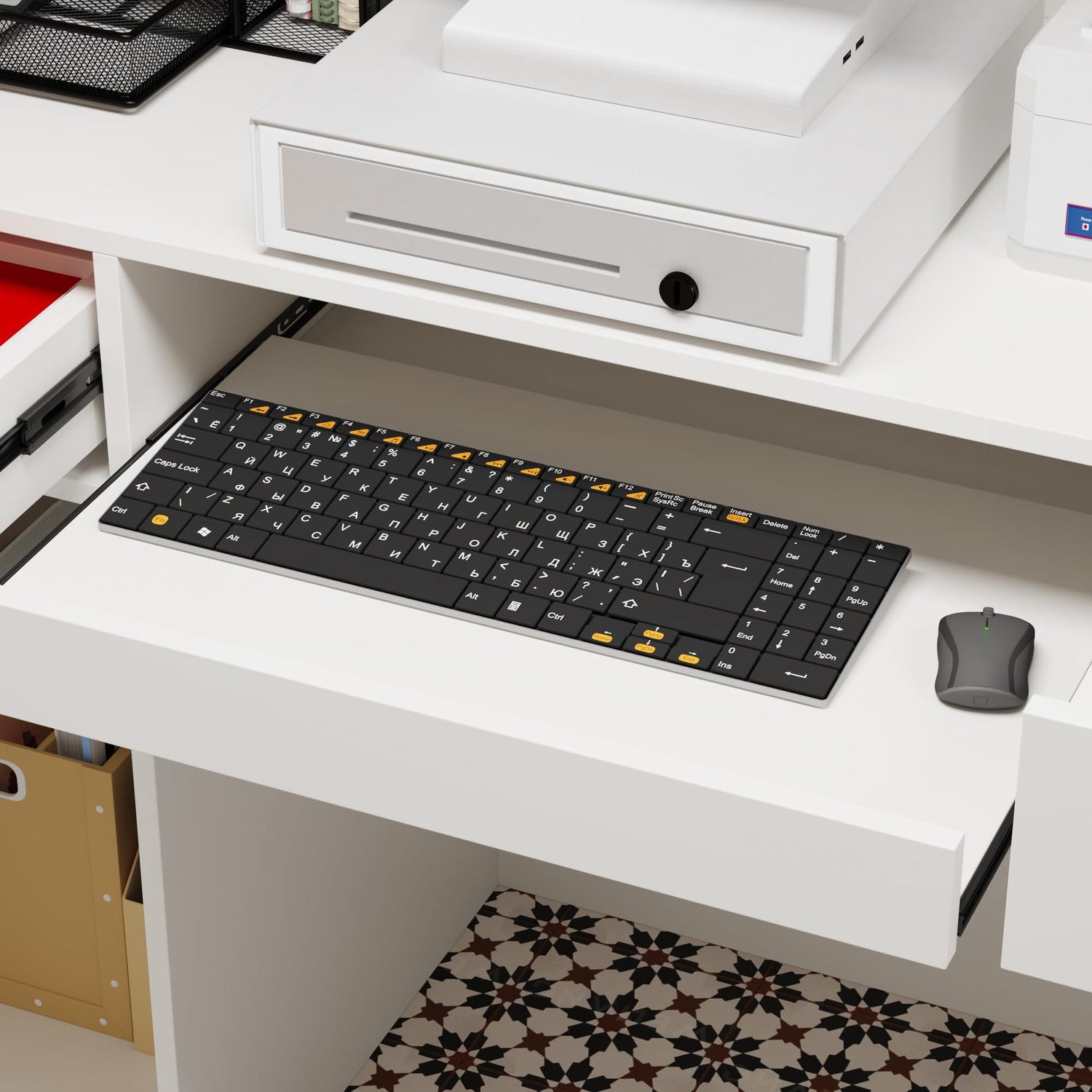 - [Reception Desk with Counter] - This white reception desk provides you with a comfortable work area. It comes with a counter to provide a more private workspace to stay focused on your work. The keyboard tray and cable grommet create a more organized and desktop