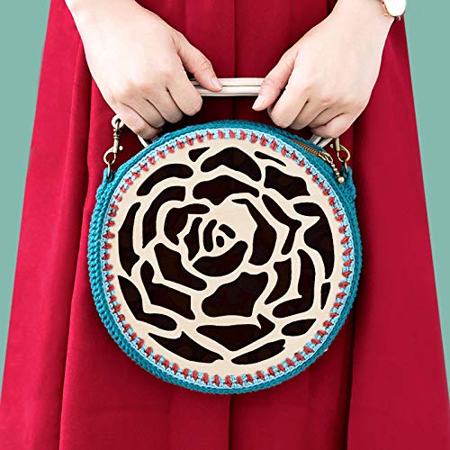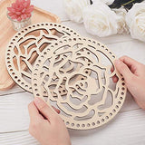 AHANDMAKER 2 pcs Natural Wooden Basket Bottom, 7.8 Inch Rose Circle Blank Hollow Crochet Basket Wood Base for DIY Knitting Bag Bottom Shaper Craft