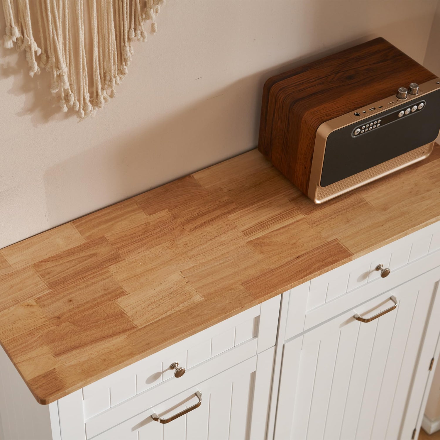 AHB 13 Gallon Tilt Out Trash Bin Cabinet with 2 Drawers, Adjustable Shelves,Kitchen Storage Cabinet with Garbage Bin Tilt Out Laundry Hamper for Kitchen, White