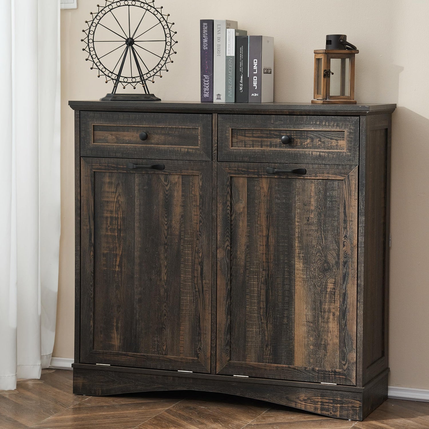 AHB 13 Gallons Tilt Out Trash Cabinet Freestanding Kitchen Trash Cabinet Hidden Garbage Recycling Cabinet with Hideaway Drawers Pet Proof Trash Can for Kitchen Dining Room Living Room, Rustic Brown