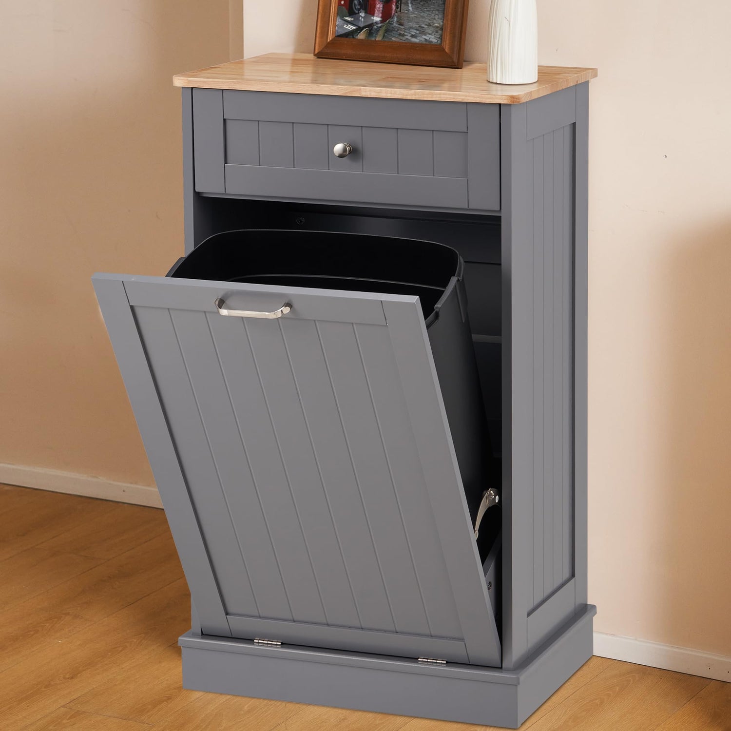 AHB 13 Gallons Tilt Out Trash Cabinet, Hidden Trash Can Kitchen Wooden Tilt Out Pet Proof Hidden Trash Bin for Kitchen Living Room,Grey