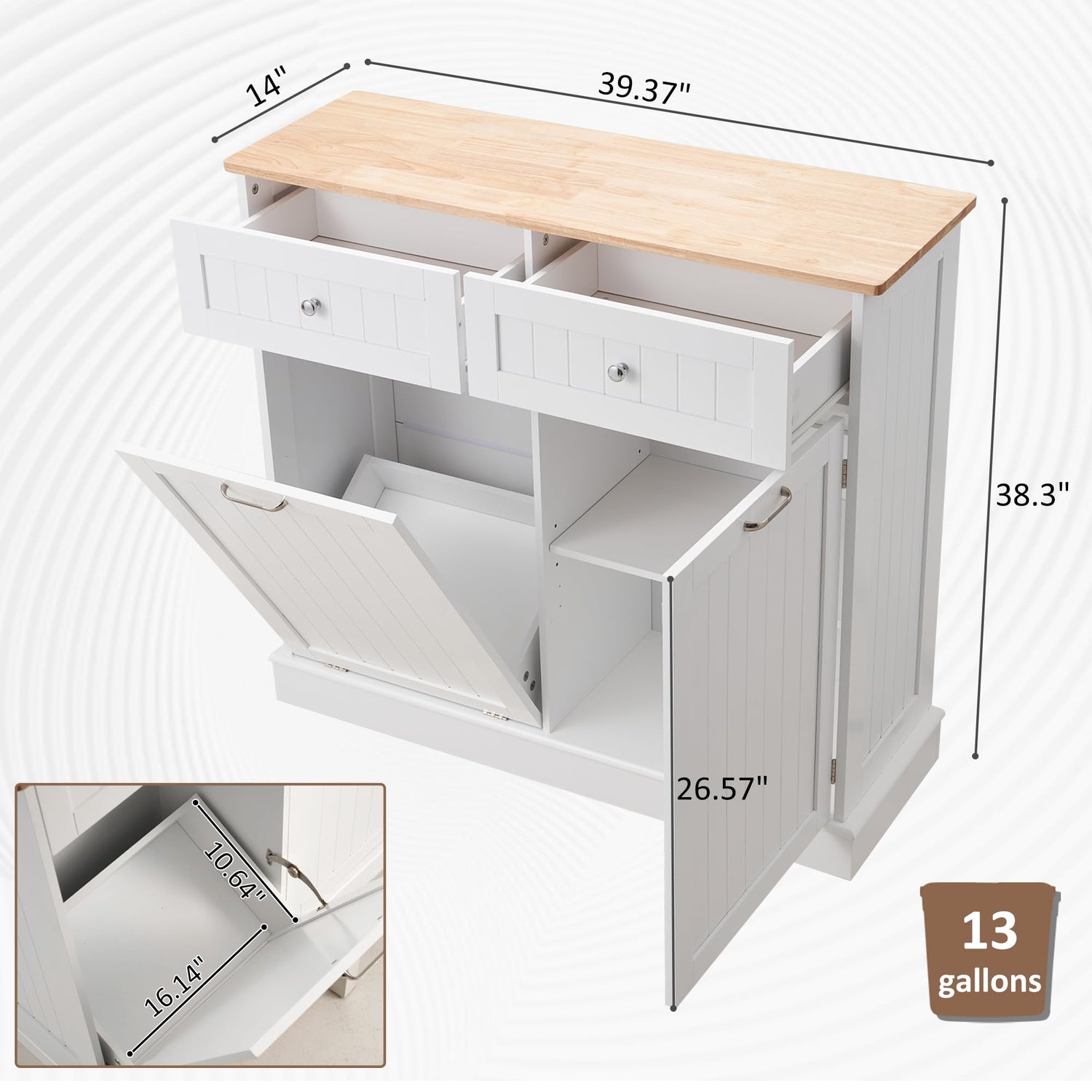 AHB 13 Gallons Tilt Out Trash Cabinet Kitchen Trash Bin Cabinet Free Standing Recycling Trash Can Cabinet with Hideaway Drawers Pet Proof Trash Can Holder for Kitchen Living Room, White