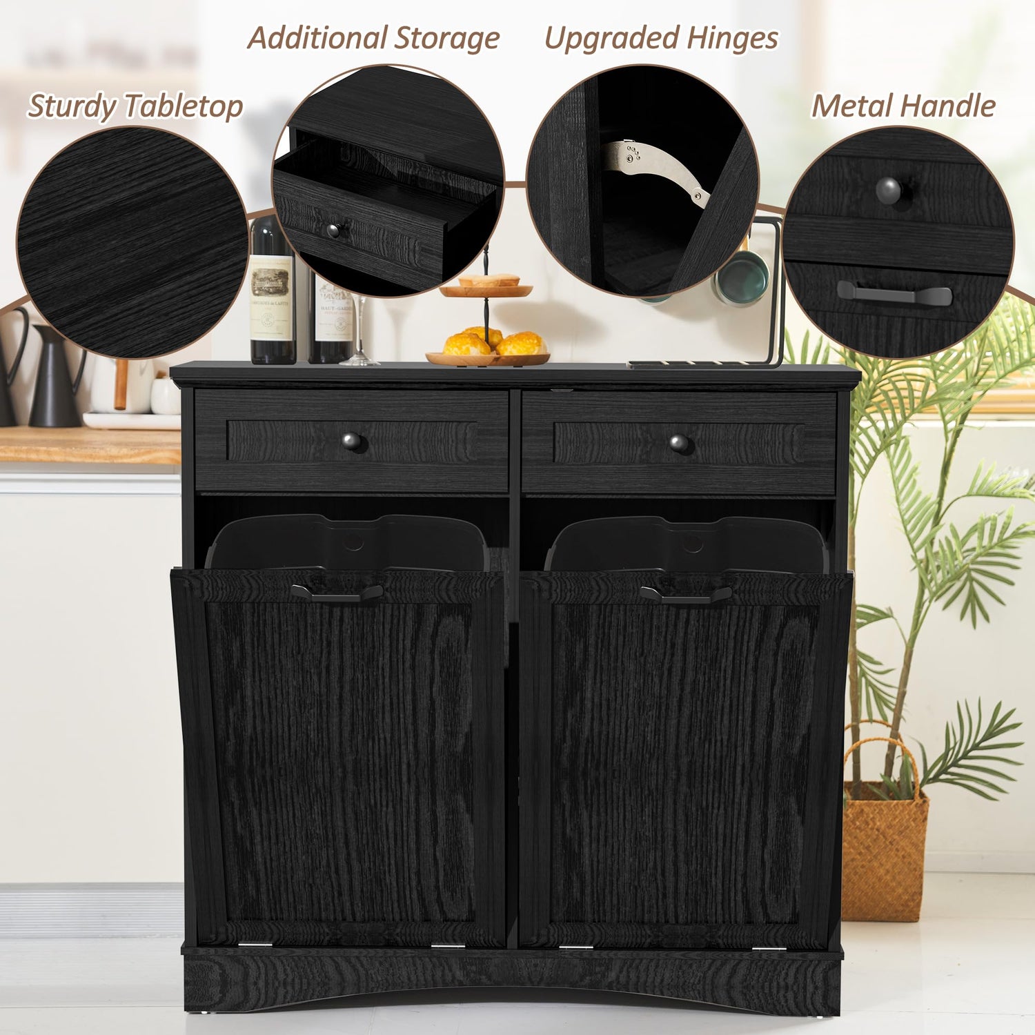 AHB Double Tilt Out Trash Cabinet Freestanding Kitchen Trash Cabinet, 2x13 Gallons Hidden Garbage Recycling Cabinet with Hideaway Drawers Pet Proof Trash Can for Kitchen Living Room, Dark Black