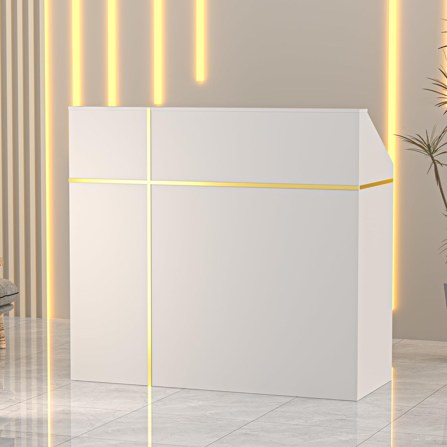 - DIY DESIGN: Our Front Desk comes with two colors of metallic decals, so you can freely combine and decorate the table to add an eye-catching style to it.Modern and minimalist appearance, add your creative decorations to show a hospitable atmosphere and make your reception area attract customers' attention and interest.