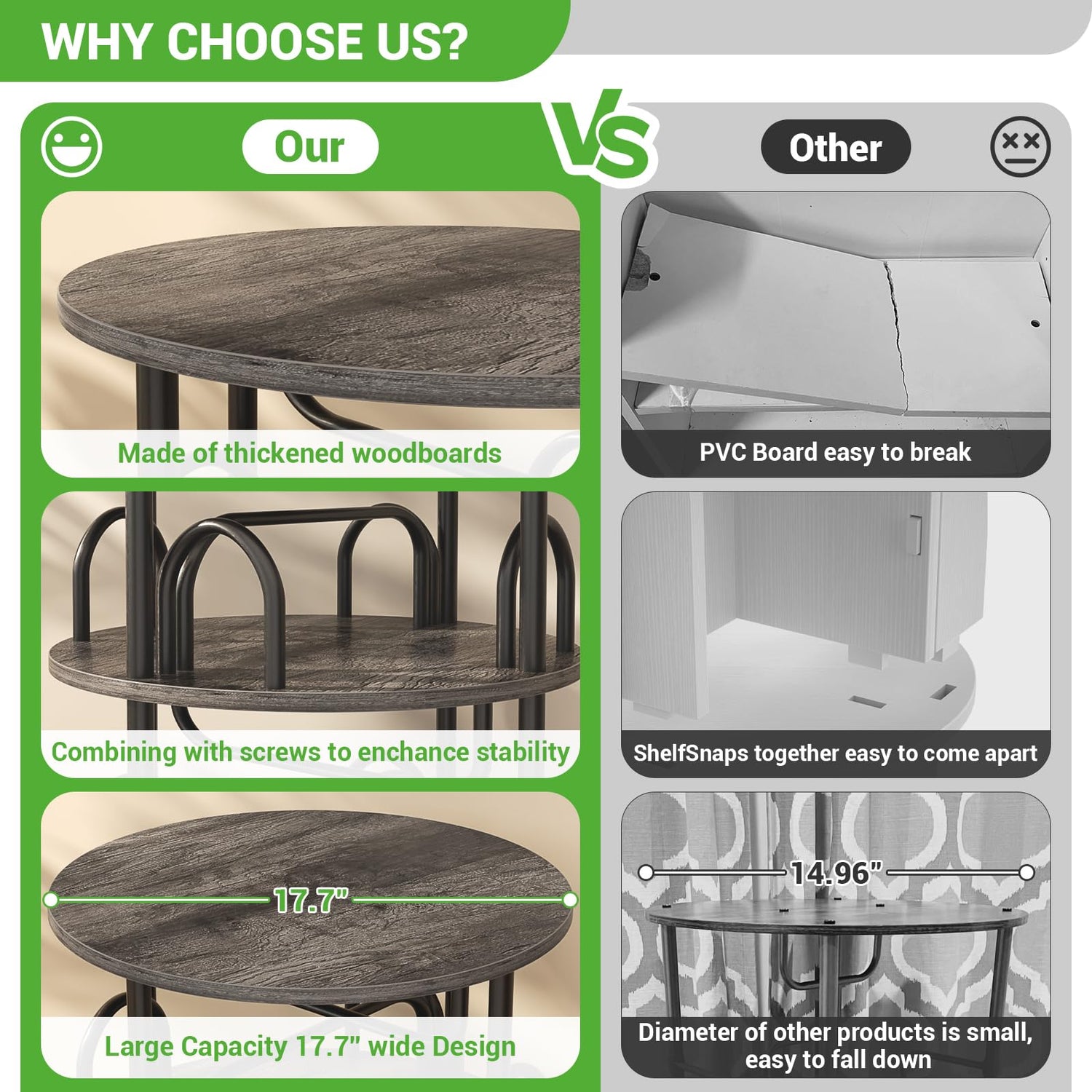 - 【Smooth 360° Rotating Bookshelf】The rotate book storage shelf is made of high-quality P2 MDF Board and rugged metal frame that provides great stability and durability, won't tilt or swing easily. with a turnplate on the bottom, can rotate 360 degrees freely, Unique round bookshelf design can be avoided bumped on the edges, better for use.