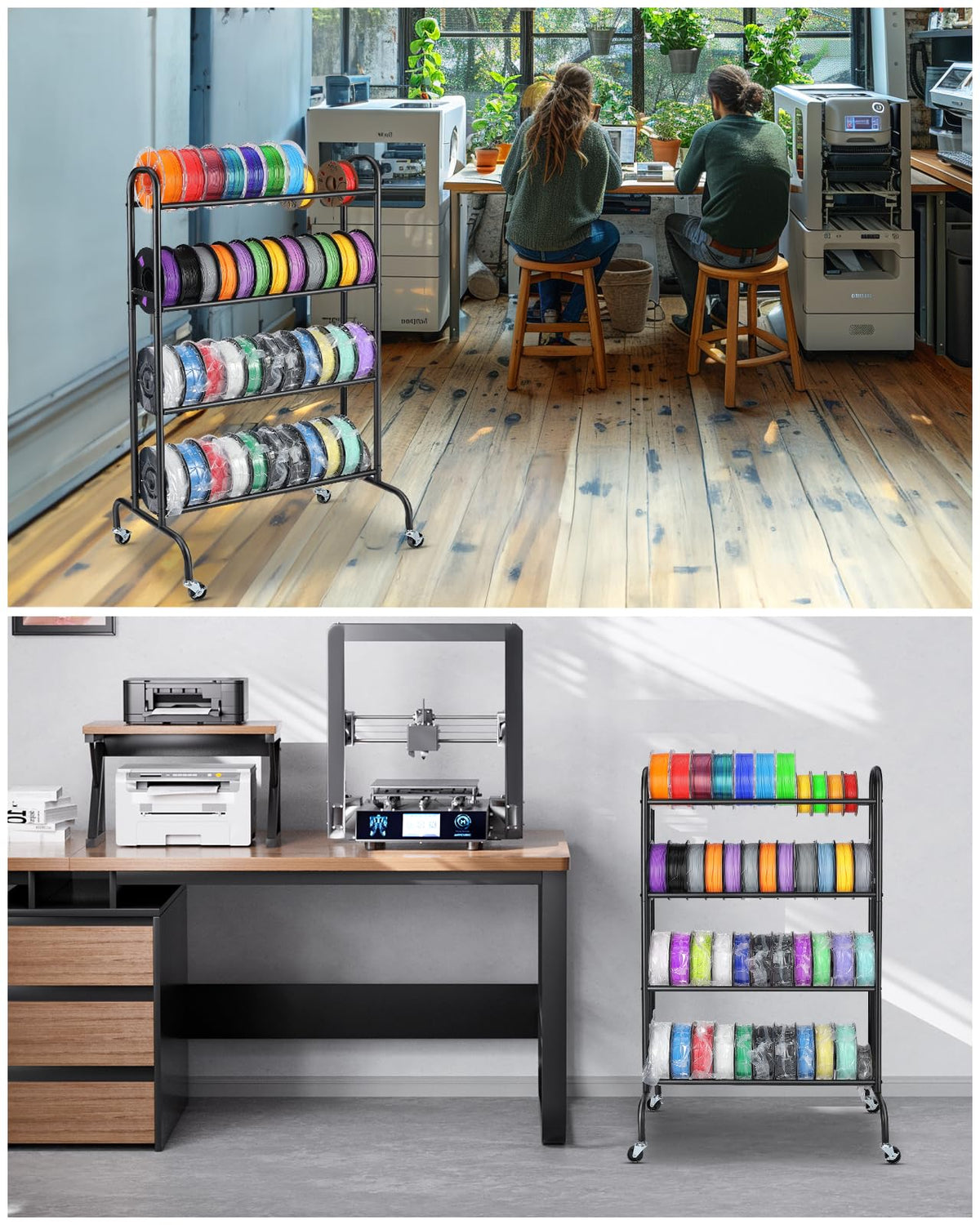 - Stable & Secure Storage : Rest assured knowing that your 3D filament spools are securely held in place, without the risk of slippingor toppling. Each laye load-bearing up to 60lb with adjust foot or load-bearing up to 50lb with wheels.