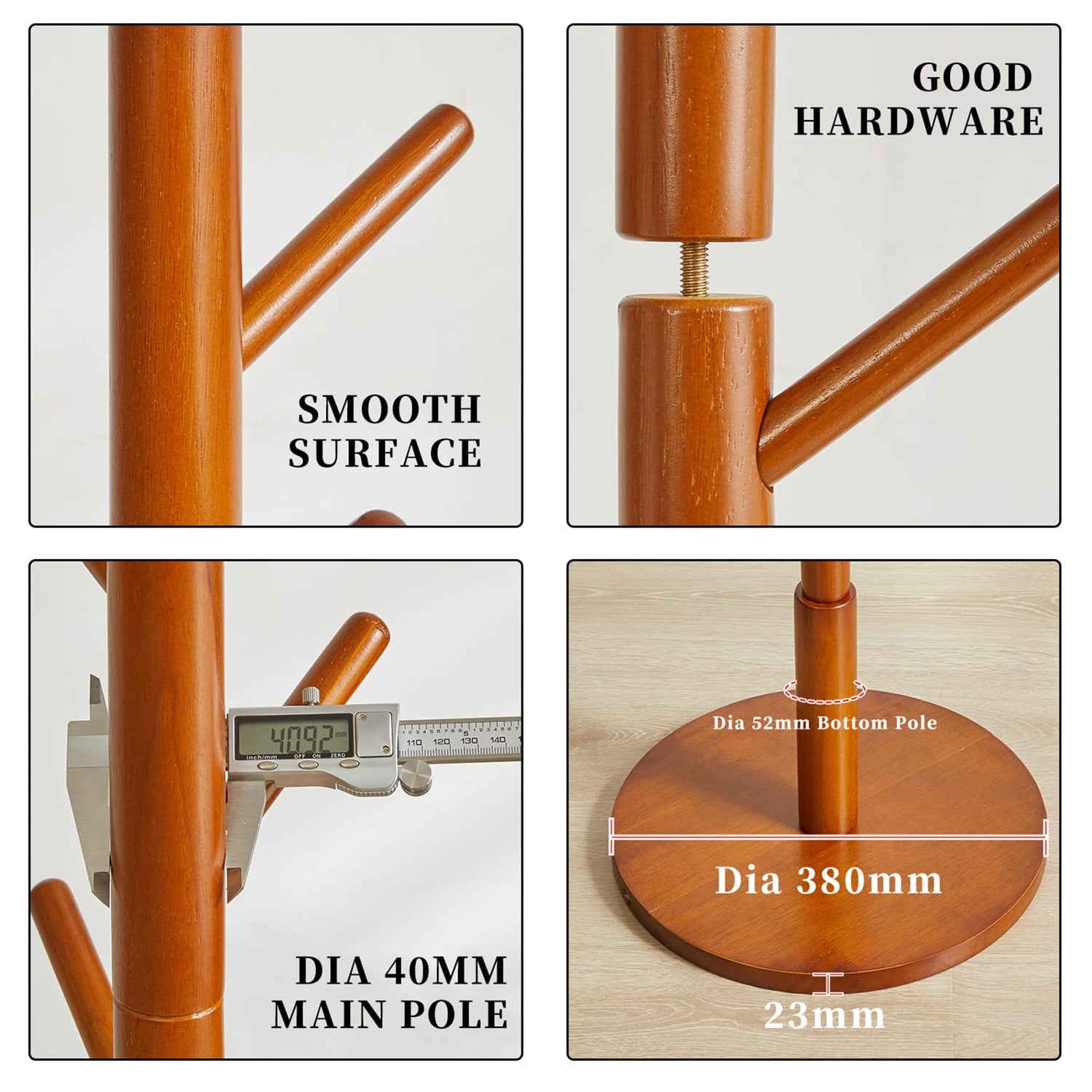 - Stable and sturdy: The coat rack is made of solid wood, and the base is a thick, wide, heavy-duty disc that provides excellent sturdiness with load-bearing 8 lb each hook and max total 40 lb