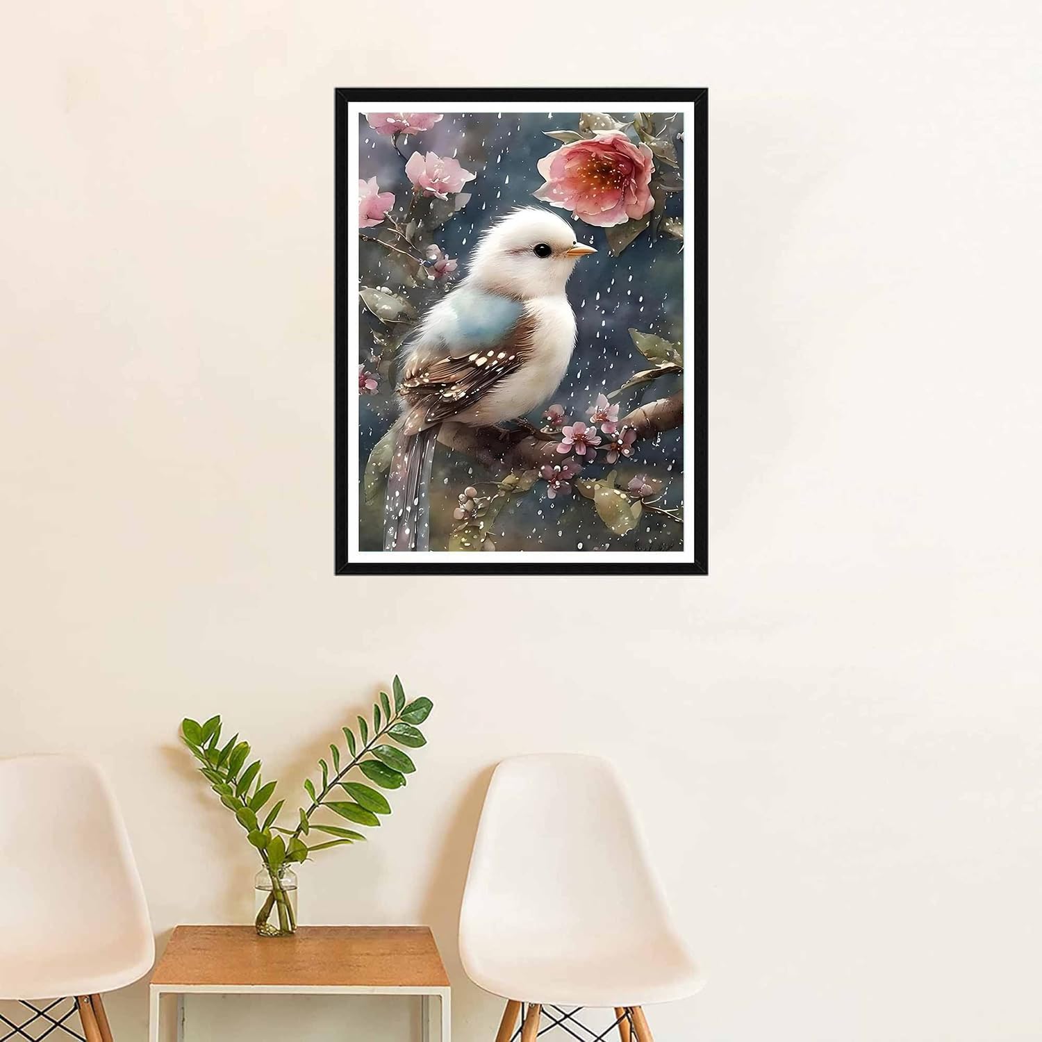 AIBOERL Diamond Painting Kits Bird Flower for Adults, Full Drill Diamond Dots Paintings for Beginners, Round 5D Paint with Diamonds Pictures Gem Art Kits for Home Wall Decor (11.8 * 15.8 inch)