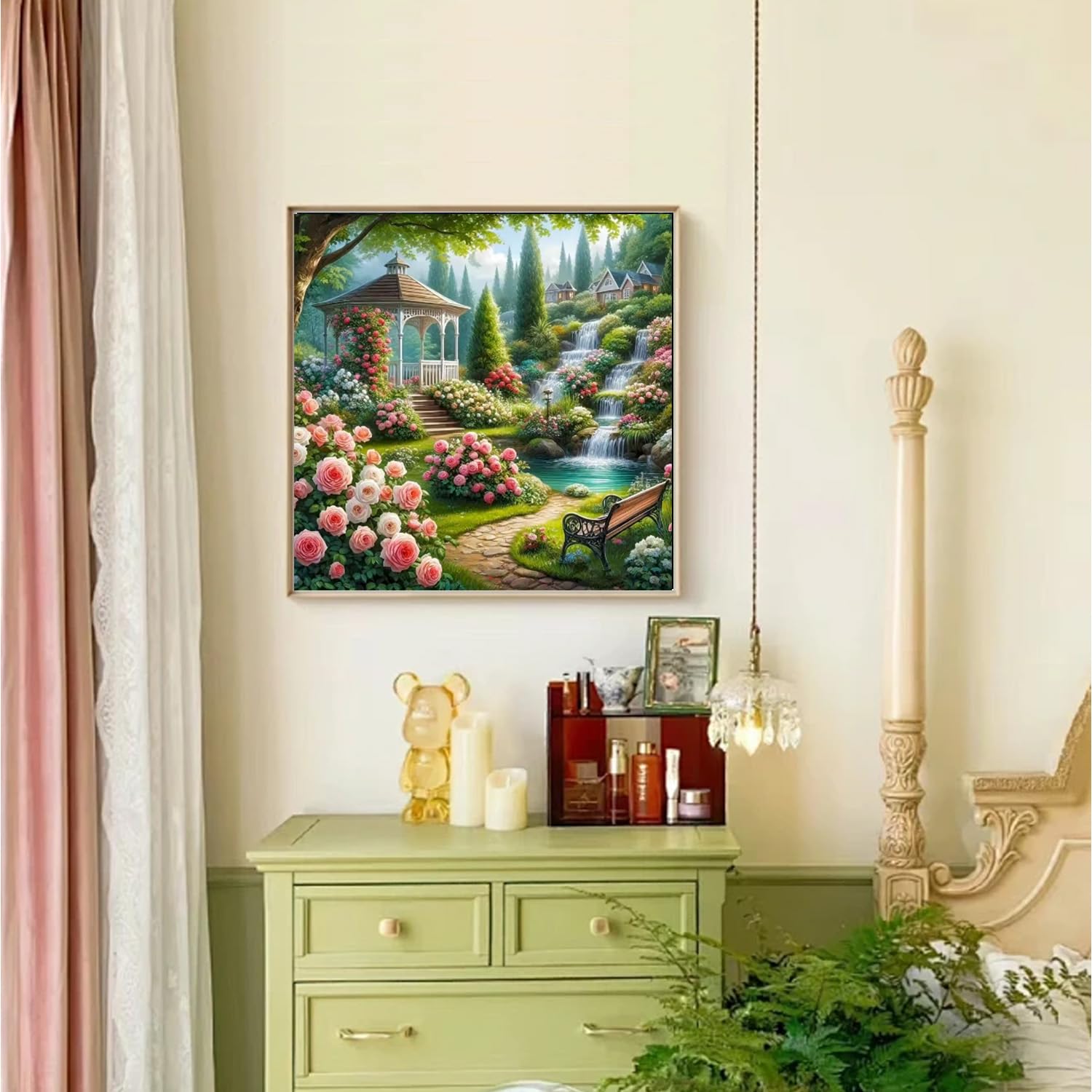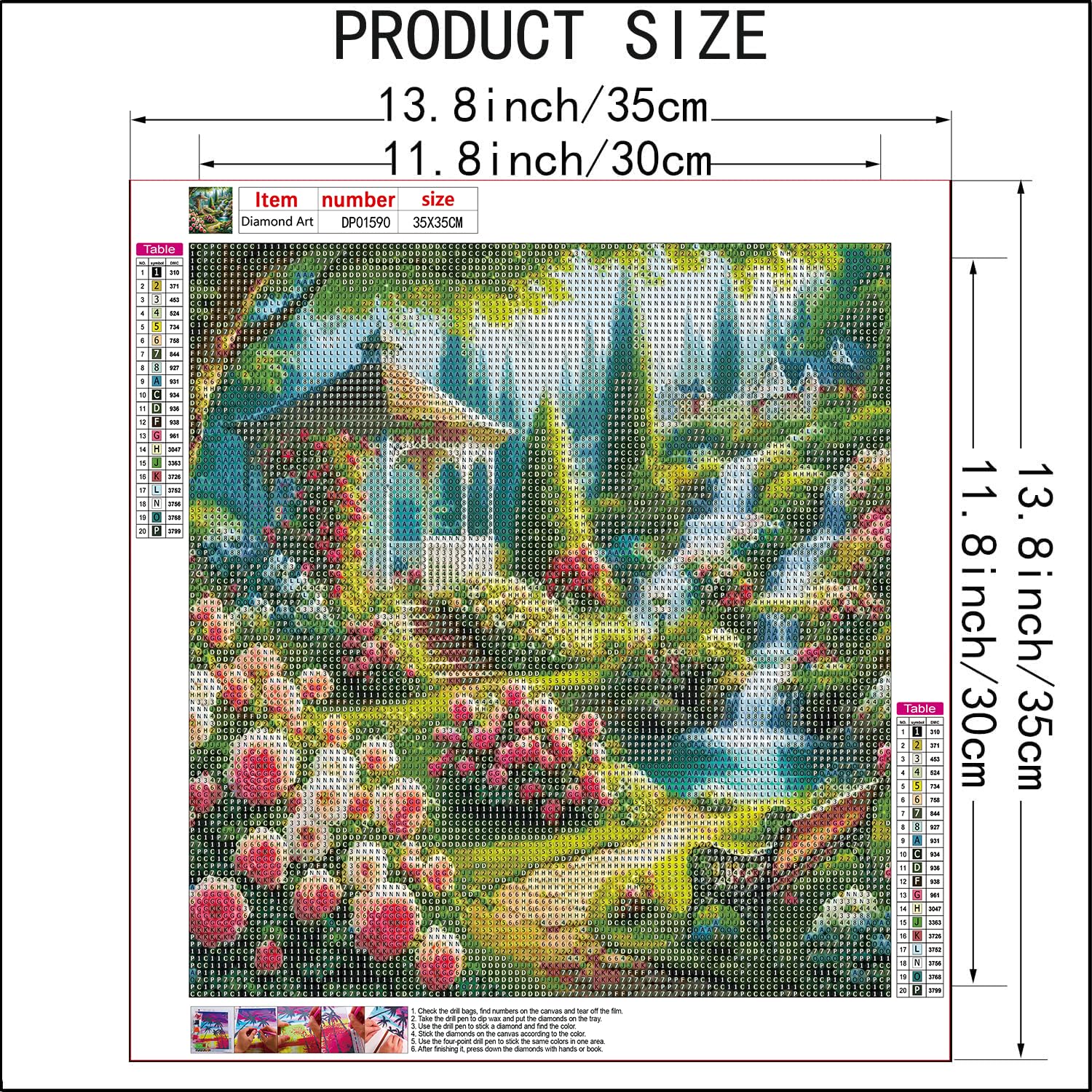AIBOERL Garden Landscape Diamond Art Kits for Adults,Garden 5D Diamond Painting Kits for Adults Beginners,DIY Full Round Drill Diamond Dot Painting Gem Art Kits for Adult, Home Wall Decor 14x14Inch
