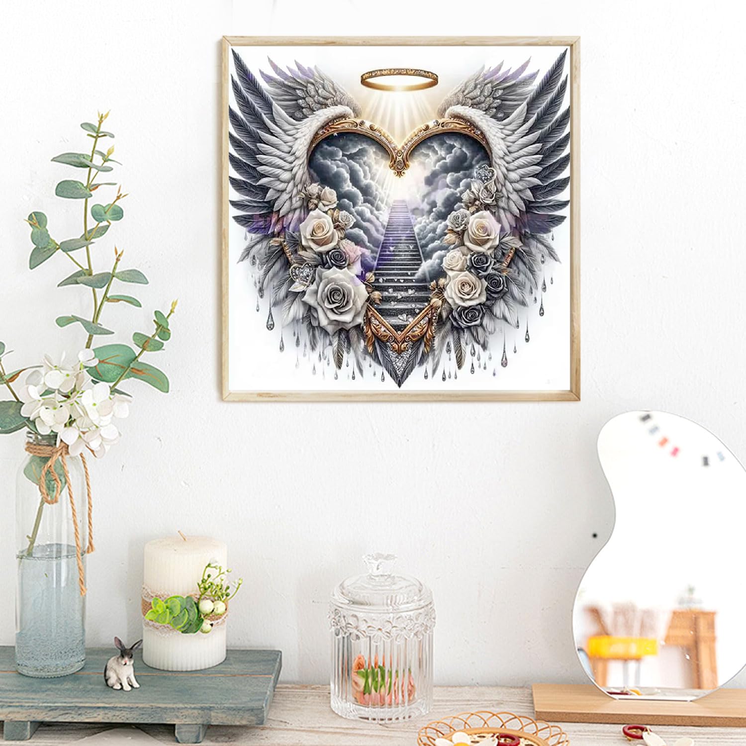 AIBOERL Heart Wing Diamond Art Kits for Adults,Religion 5D Diamond Painting Kits for Adults Beginners,DIY Full Round Drill Diamond Dot Painting Gem Art Kits for Adult, Home Wall Decor 12x12Inch