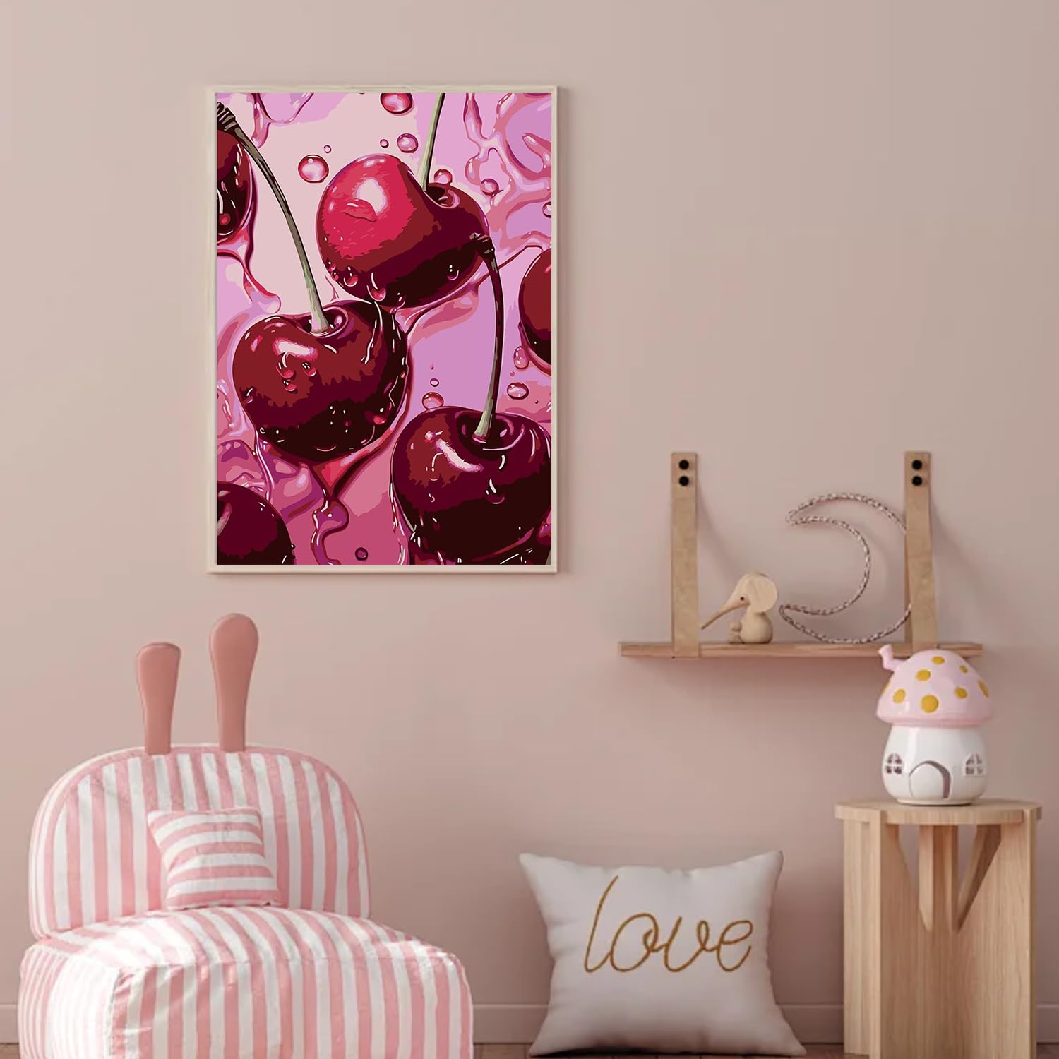 - [DIY Cherry Diamond Painting] High transparency printing canvas waterproof, even texture, the pattern itself has a sticky bottom, above the plastic, so that the picture stays sticky, and then the gemstones are fixed, easy to paste the square diamond points, not easy to move, so you can easily complete the picture, easy to frame, this thickened backing is more durable and long-lasting, to prevent the gemstones from falling off, to protect your handicrafts.