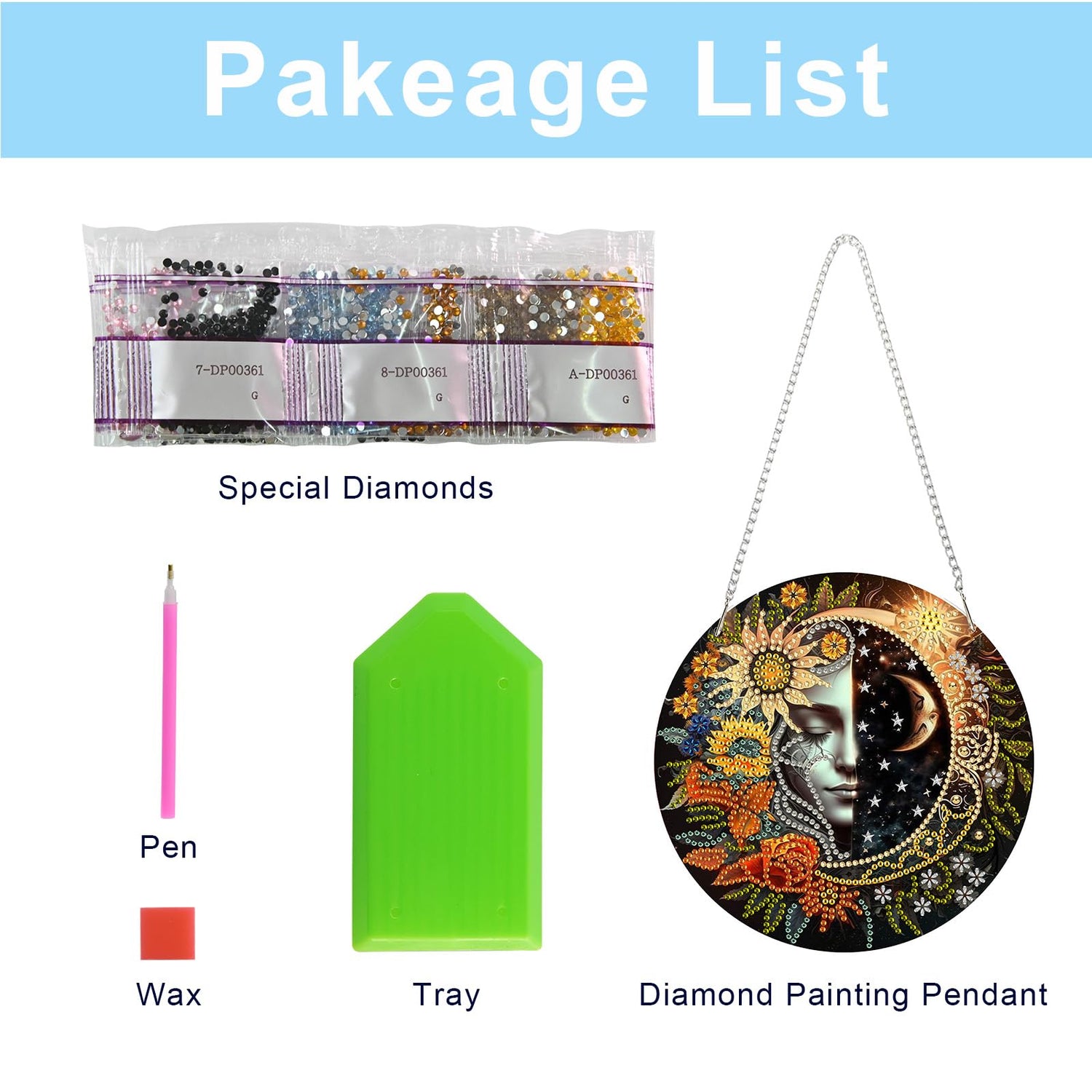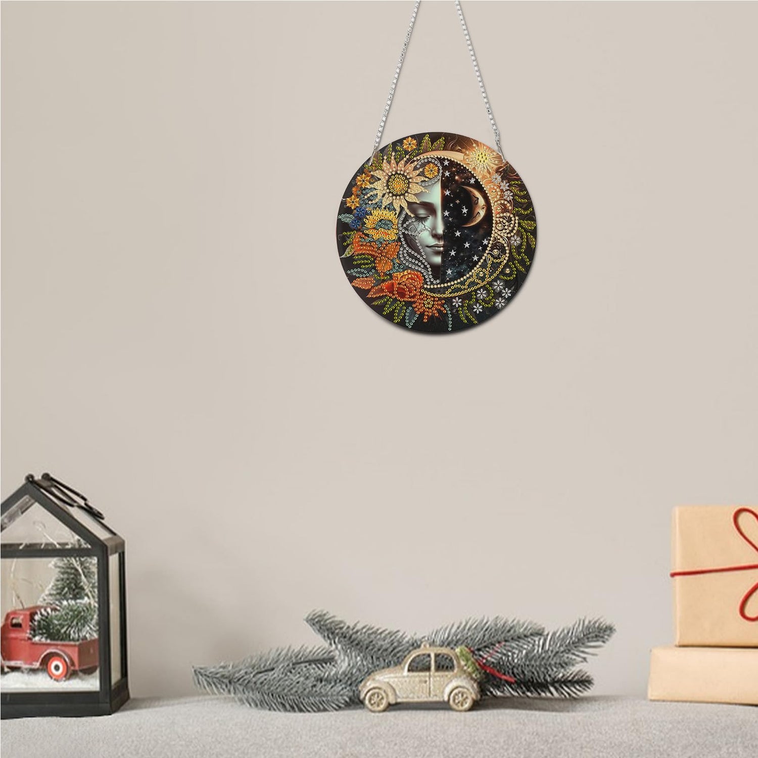 AIBOERL Sun and Moon Diamond Painting Pendant Kits,5D Diamond Art Diamond Painting Hanging Kits,7.17"X7.17"DIY Diamonds Painting Suncatcher Pendant Kit for Adults for Gift Wall Home Decor