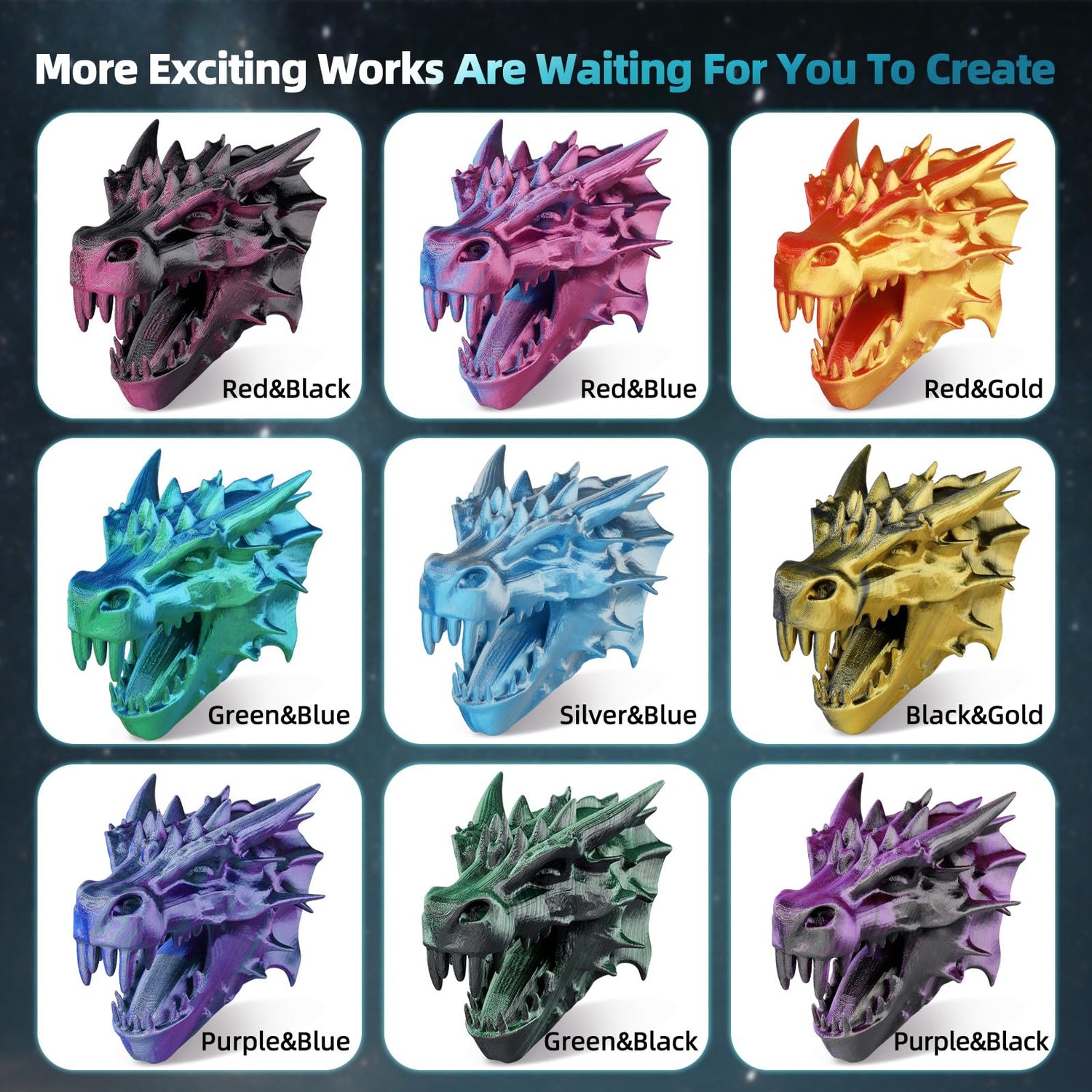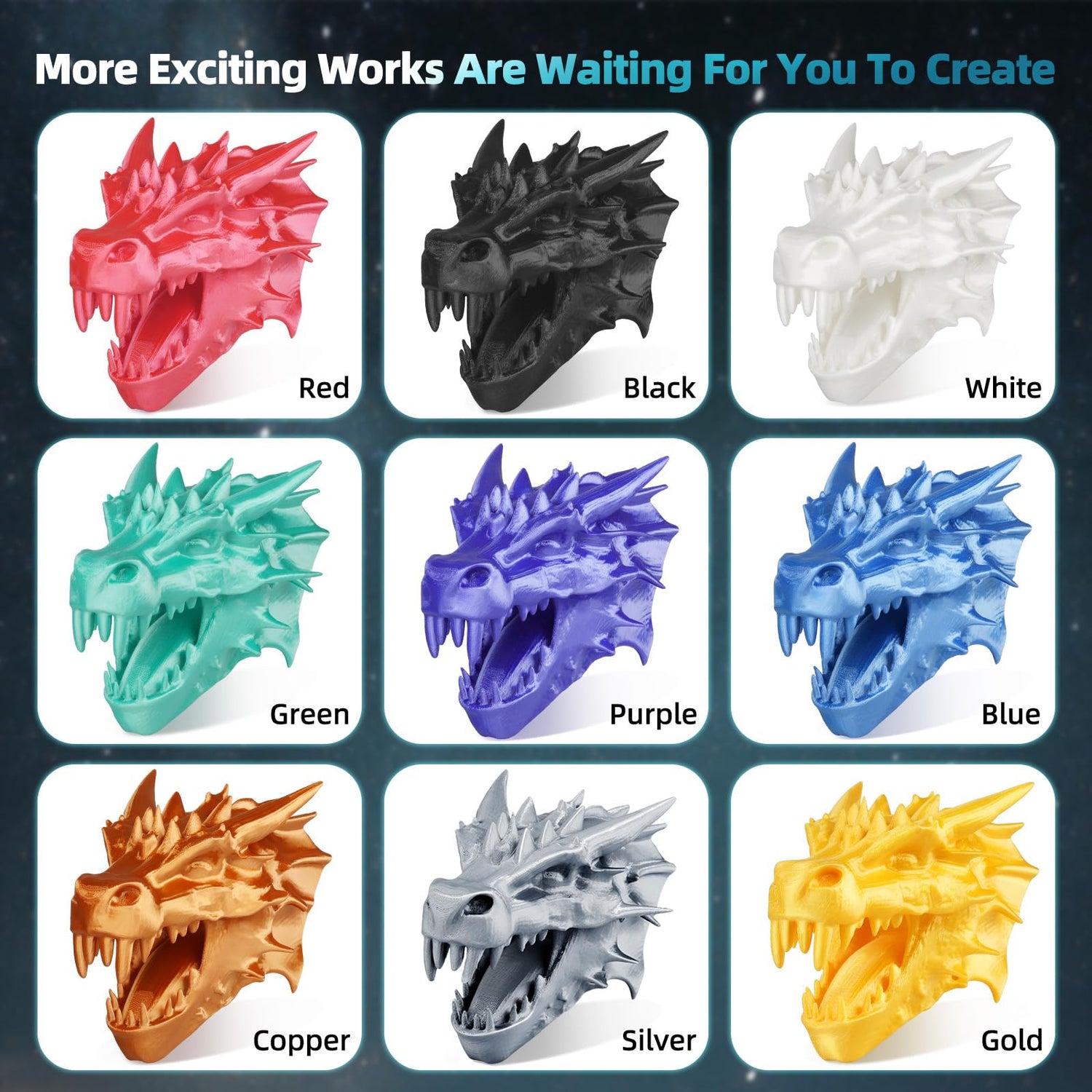 - ใ๐๐ฅ๐จ๐ -๐๐ซ๐๐ & ๐๐ฎ๐๐๐ฅ๐-๐ ๐ซ๐๐ใSilk pla are thoroughly dried and carefully vacuum sealed to protect them from moisture and dust, which ensures that there will be no issues with clogging or bubbling during printing. silk pla filament is designed to be perfectly compatible with the majority of FDM 3D printers