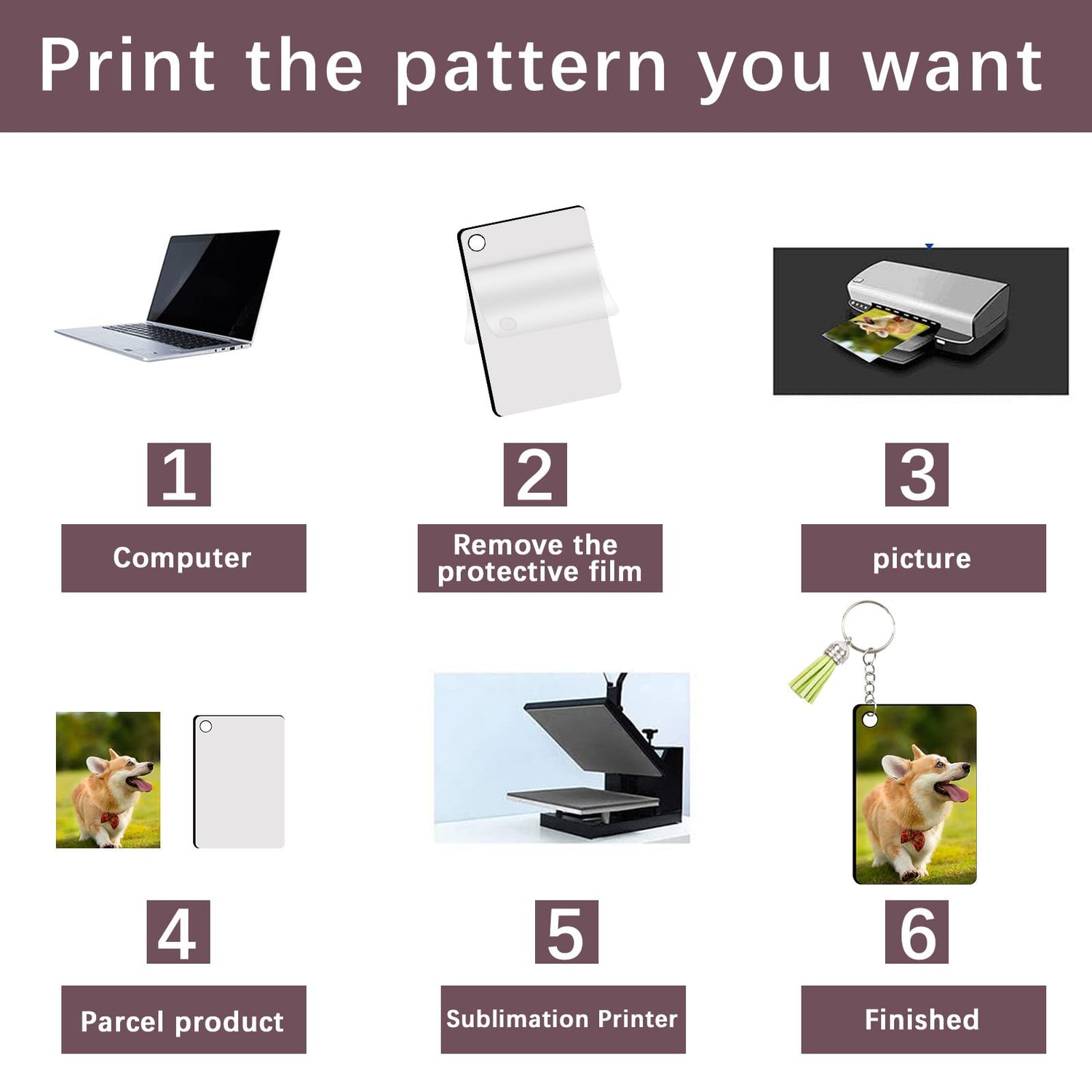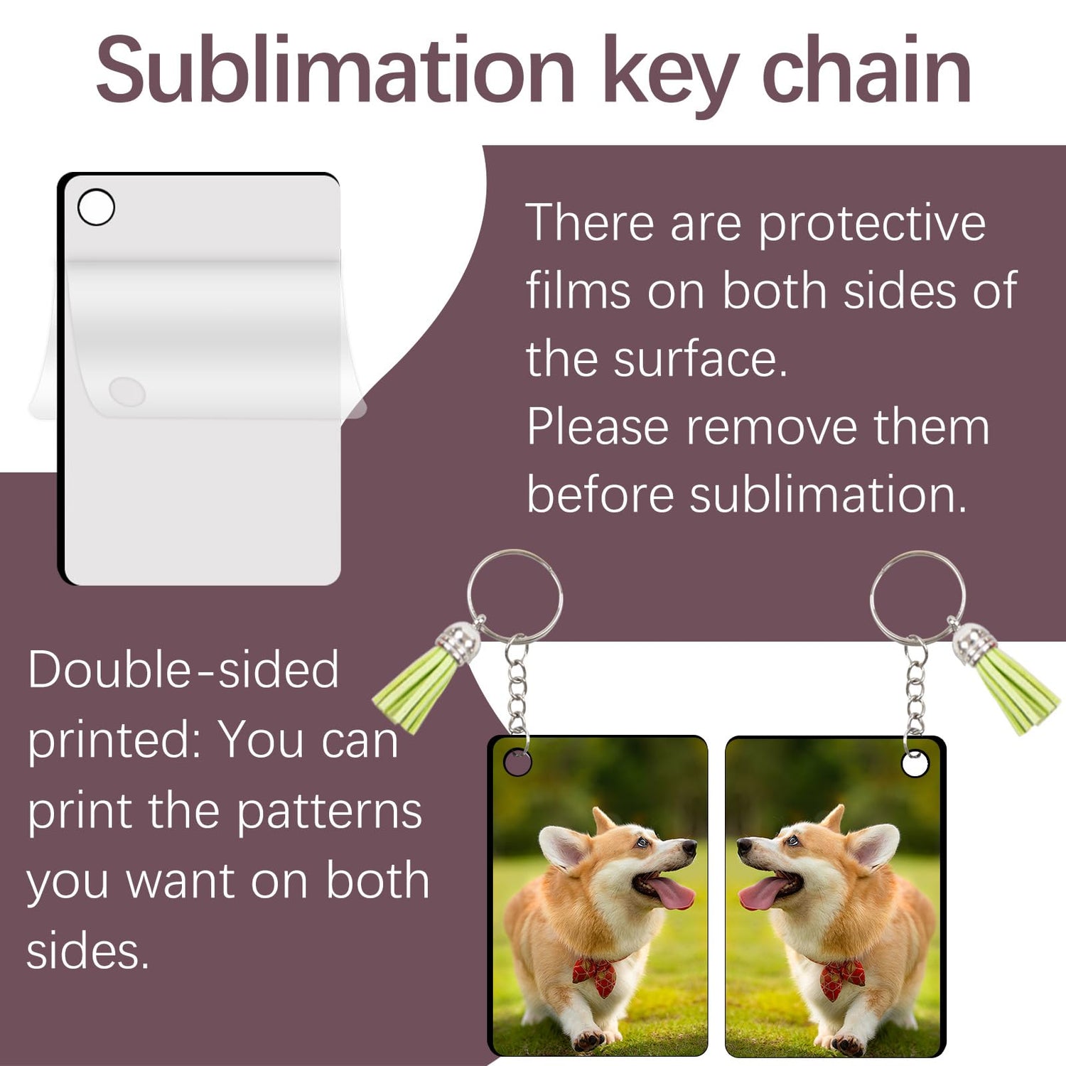 - Friendly Tips: These Sublimation key chain blanks with protective film on both side, please remove the protective films before sublimation, you will get better sublimation effects. You can print any patterns you want.