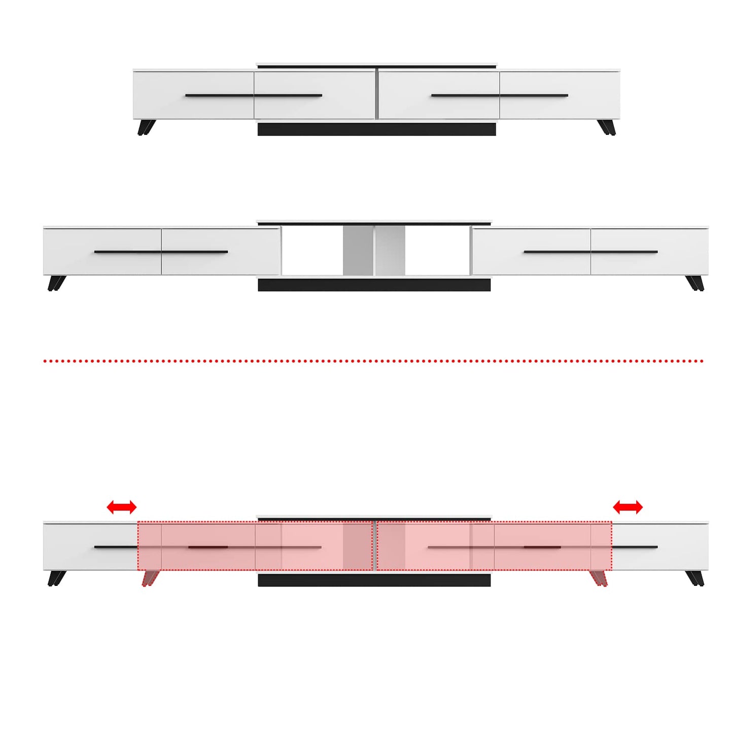- Extendable Design - This entertainment center is allowed to be stretched in both side, with length from 95" to 133.9". Note: Due to the weight imbalance, excessive stretching may cause the sides cabinets sink. Please adjust the lenght the according to the actual situation
