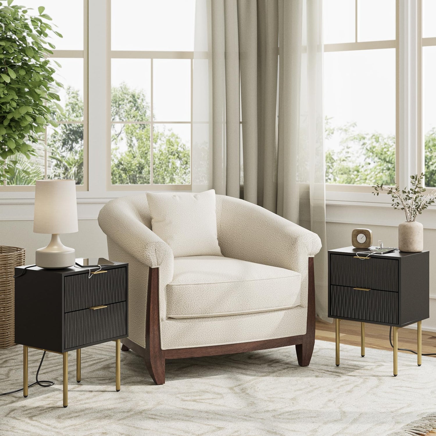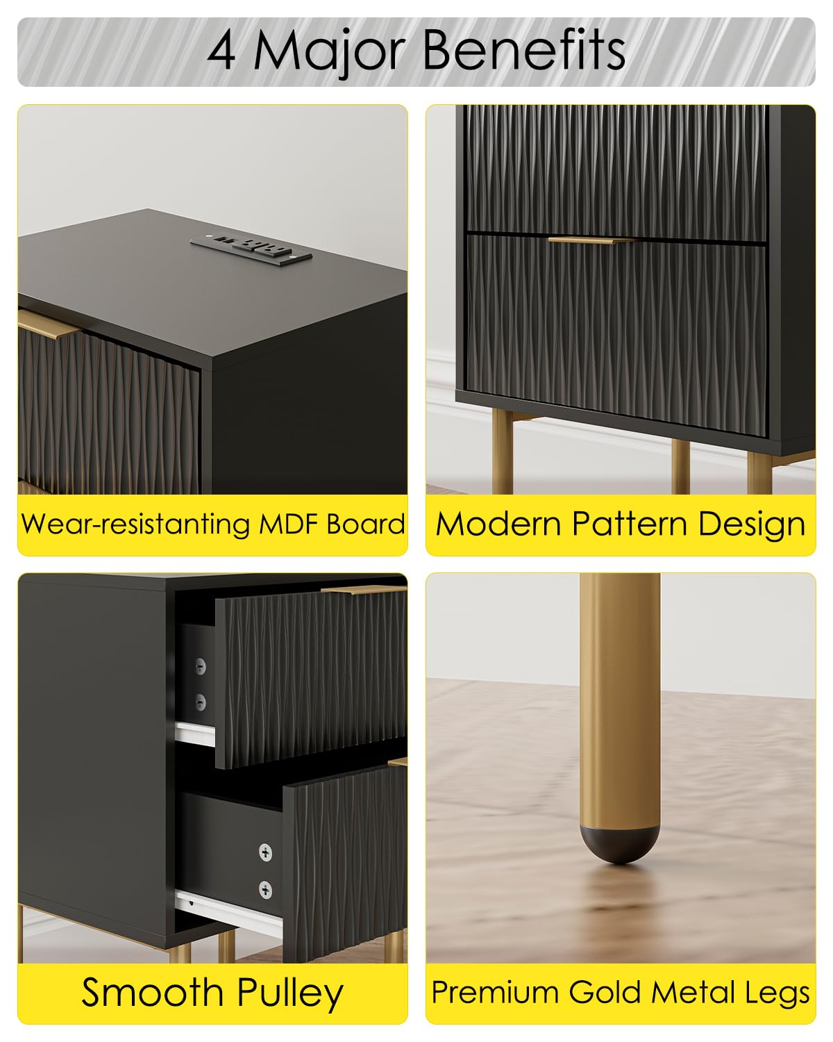 - Black Night Stand with Charging Station: Classic black and matte gold design with charging station. This nightstand creating a simple and modern atmosphere, catching eyes as a side table or end table throughout the home, adding elegance to home life.