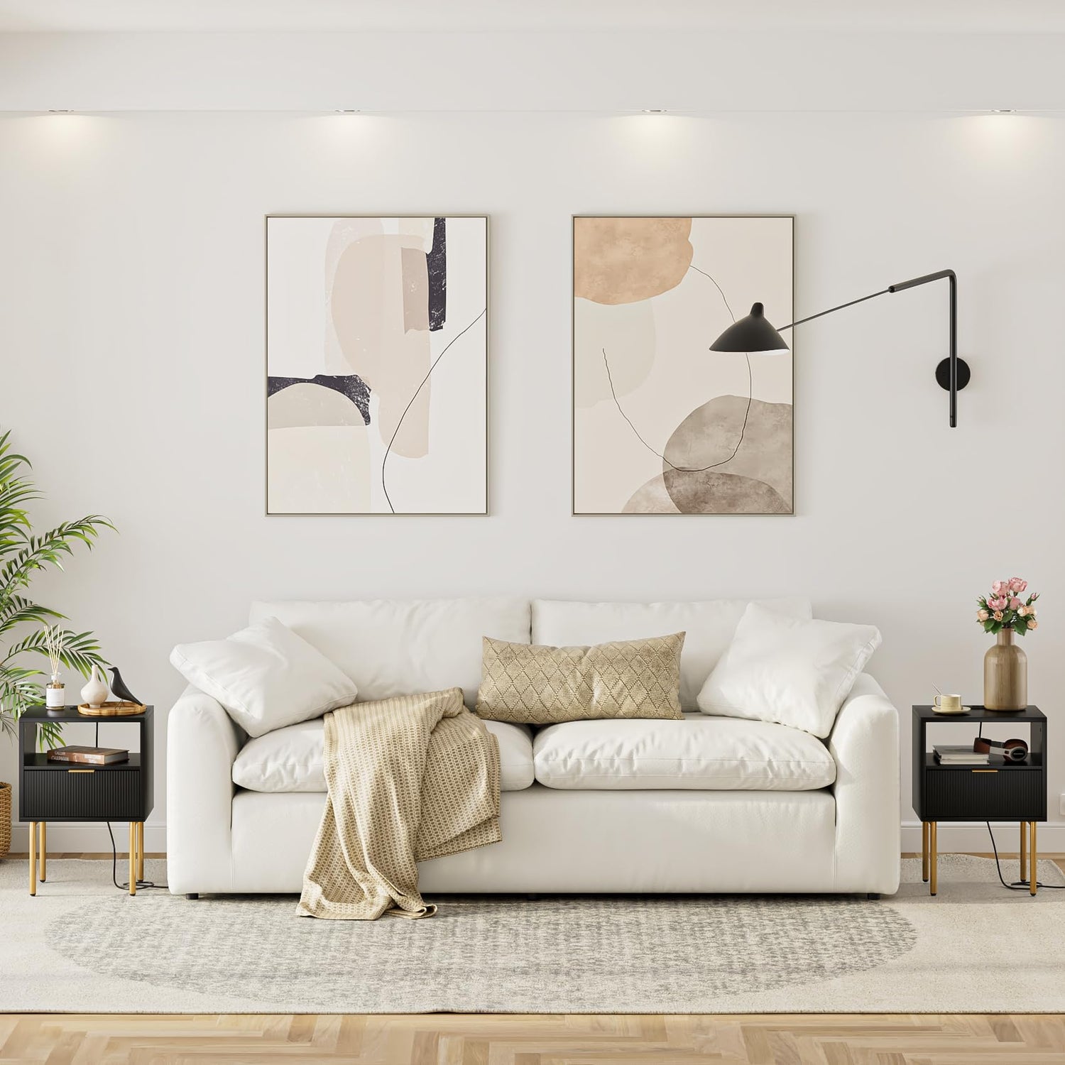 Aienvey Nightstand with Charging Station, Small Side Table, Modern Night Stand with Drawers, Bedside Table for Bedroom, Living Room End Table, Black Stripe