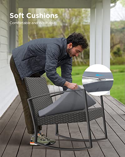 Aiho 3 Pieces Patio Furniture Set, Outdoor Wicker Furniture Set, Modern Rattan Rocking Chair Set with Coffee Table for Yard, Balcony, Poolside, Porch, Grey