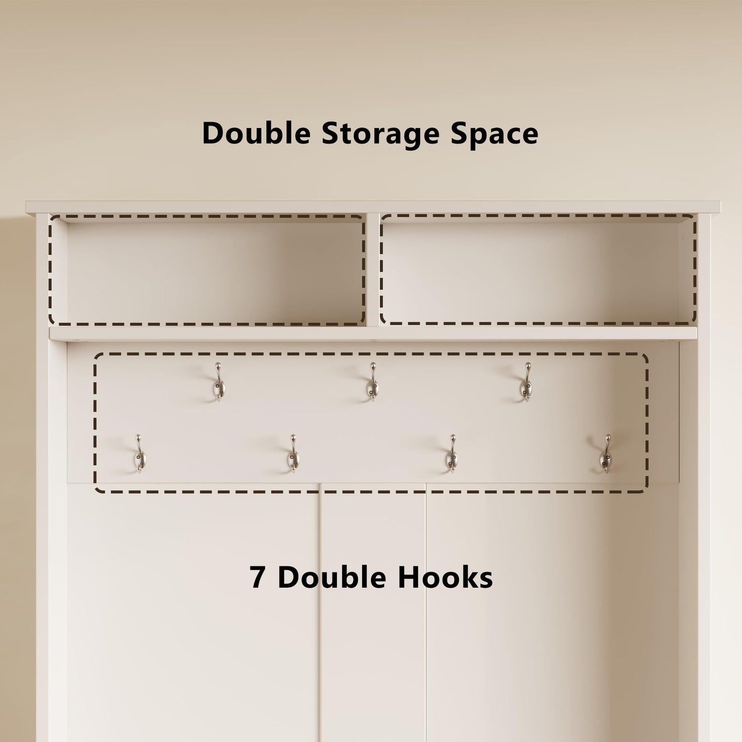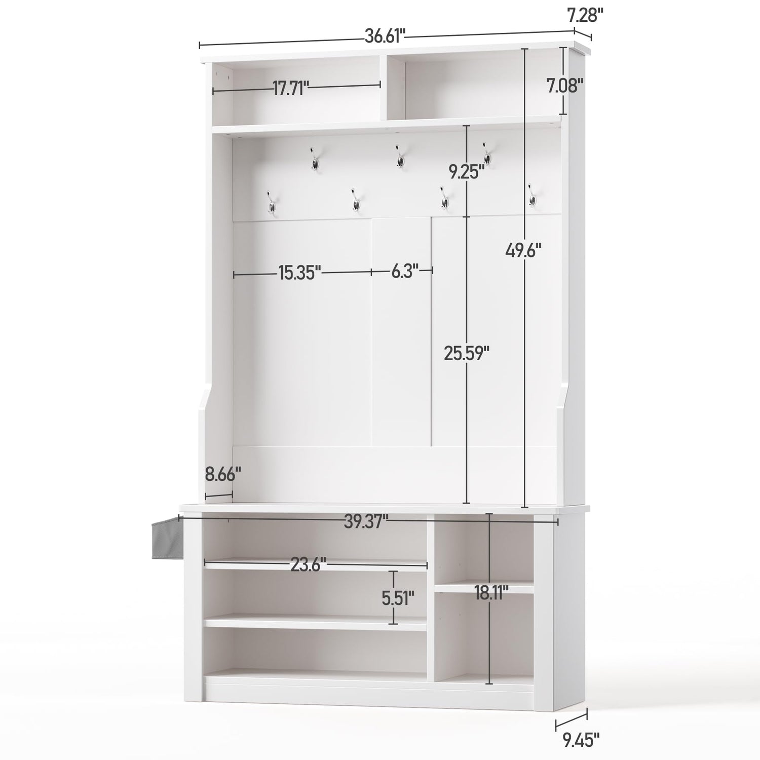 - 3-in-1 Multifunctional Hall Tree : This hall tree with bench has the function of a coat rack, storage, and hall tree. Combing top 2-tier storage shelf, coat hooks, bench, shoe storage with adjustable board and you could fulfill a variety of storage needs