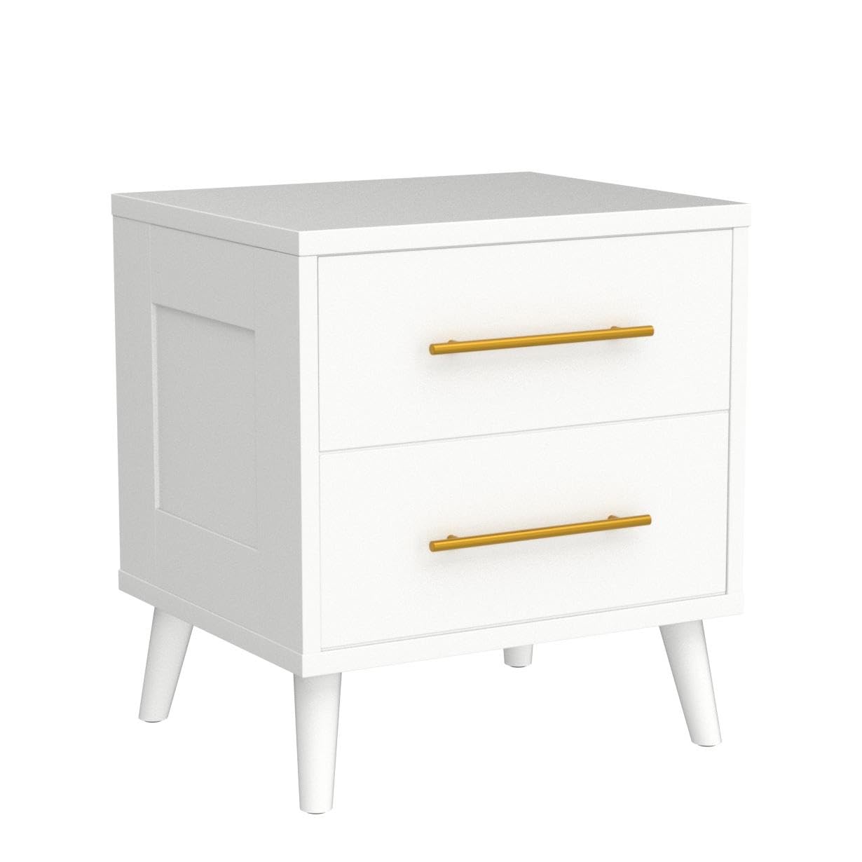 Aiho Nightstand, Bedside Table with Metal Handles, Modern Wood Night Stand 2 Drawer Dresser for Bedroom, White Nightstand