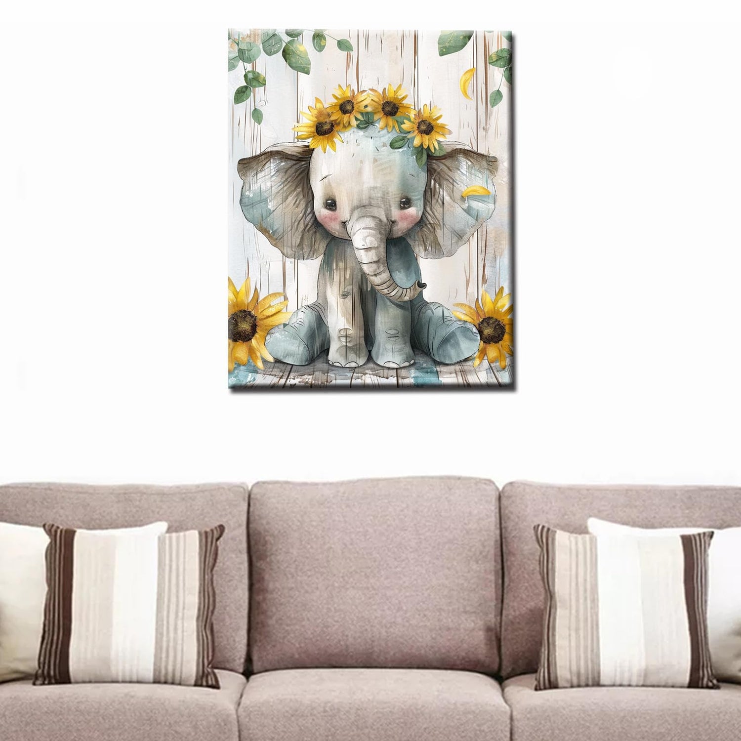 Aihonmin Cute Elephant Paint by Numbers Kits with Brushes and Acrylic Pigment Sunflower Painting for Adults Beginner Rustic Style Pictures Craft Home Decor 16''x20''(DIY Framed)