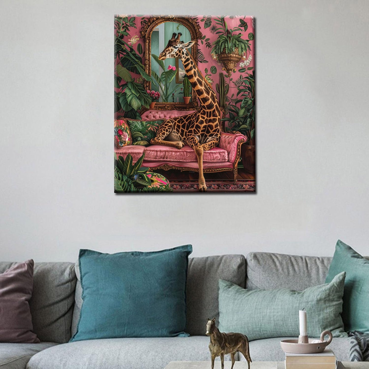 Aihonmin Cute Giraffe Paint by Numbers Botanical Paint by Numbers Kits Children,Cactus Tree Painting Art Craft on Canvas with Brushes Acrylic Pigment Drawings Gift Without Framed 16''W x 20''H