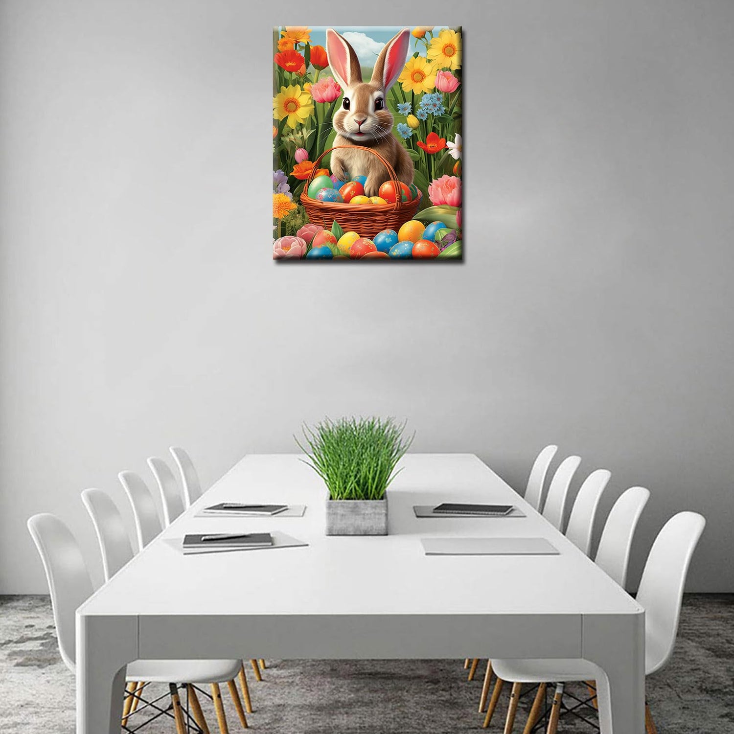 Aihonmin Easter Bunny Paint by Number DIY Acrylic Painting Paint by Number Kit for Kids Adults Beginner Spring Garden DIY Painting by Numbers Painting Arts Craft 16x20In Easter Day (Frameless)