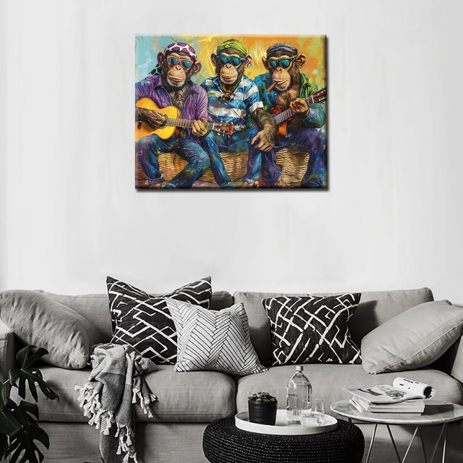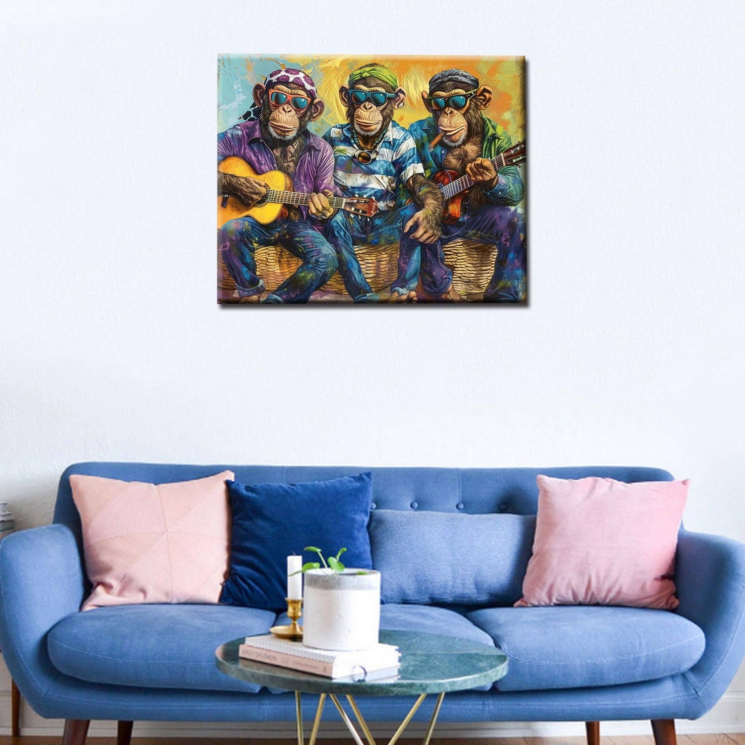 Aihonmin Guitar Monkey Paint by Numbers Kits for Children,Musical Painting Arts Craft Gift Easy to Painting for Home Wall Decor Gift Without Framed-Style 16x20 inch
