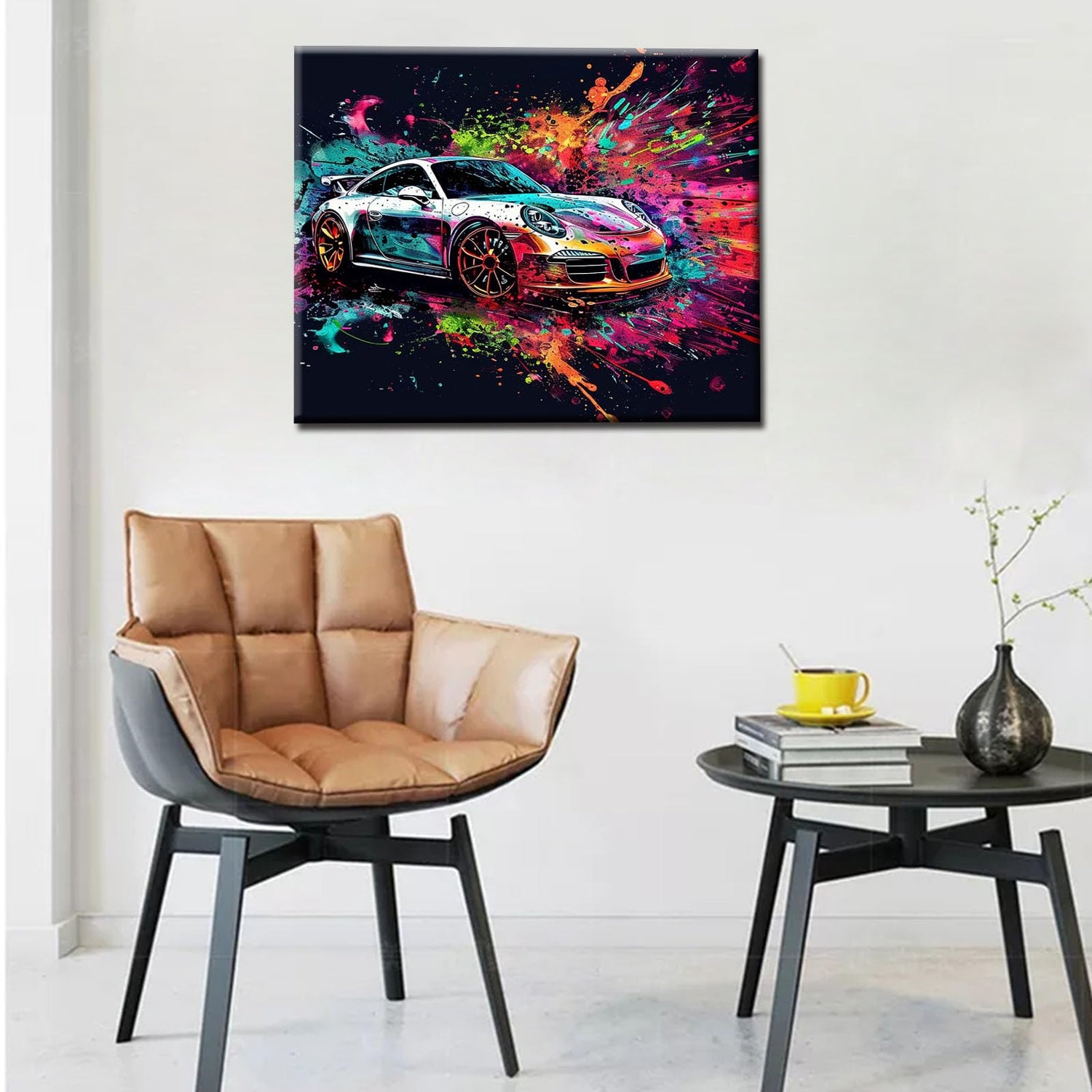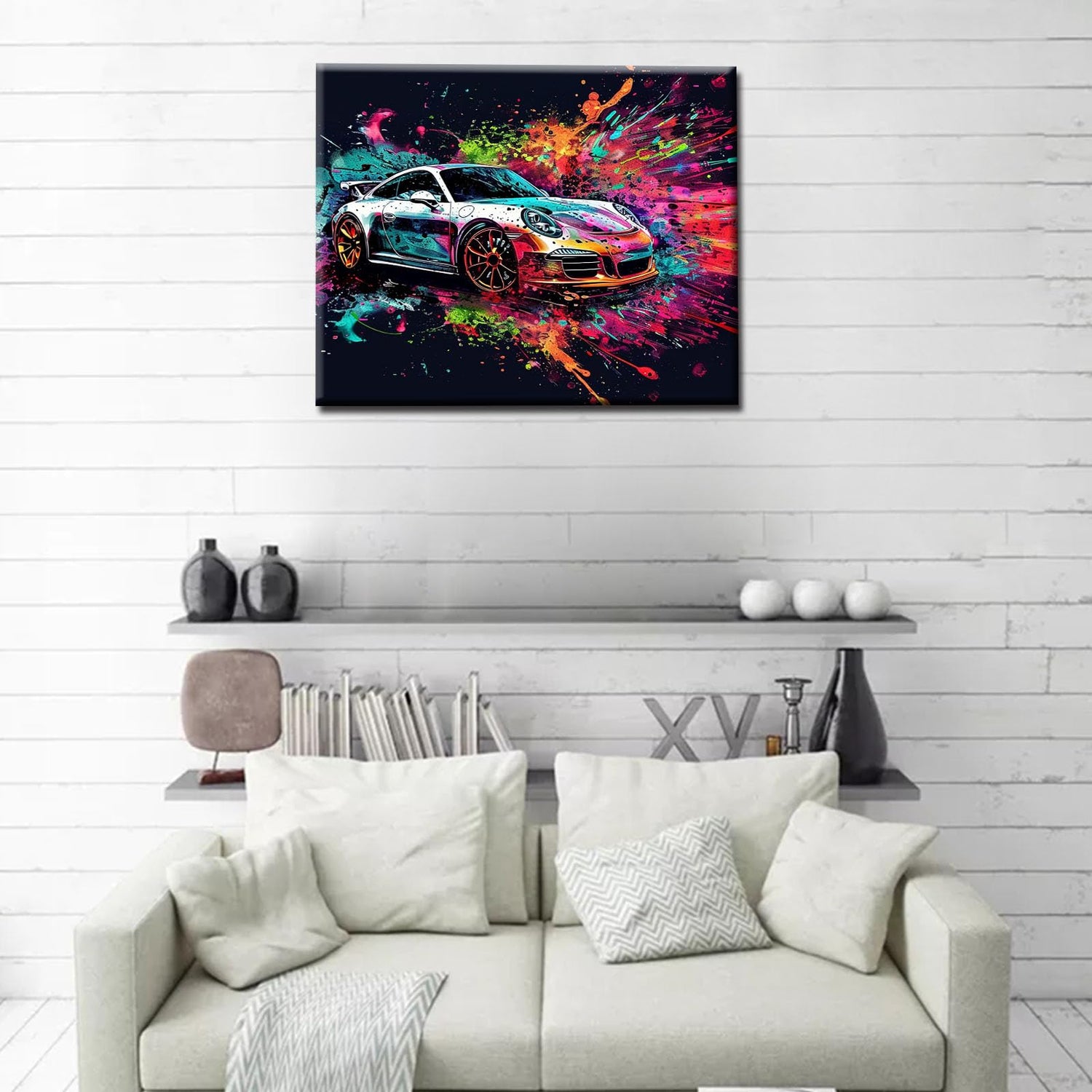 Aihonmin Racing Car Paint by Numbers Kits for Adults Beginners,Car Lovers Digital Oil Painting Kits on Canvas Painting Graffiti Car Set DIY Gift Suitable for Home Wall Decor Frameless 16''W x 20''H