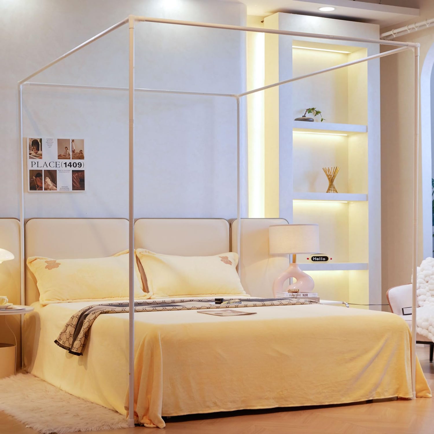 - 【Material】 Length, width, and height are all thick hollow metal iron.Our bed Canopies frame are designed to hang light Bed Canopy or mosquito nets instead of heavy things.It is external, it will wobble a bit if you push it.