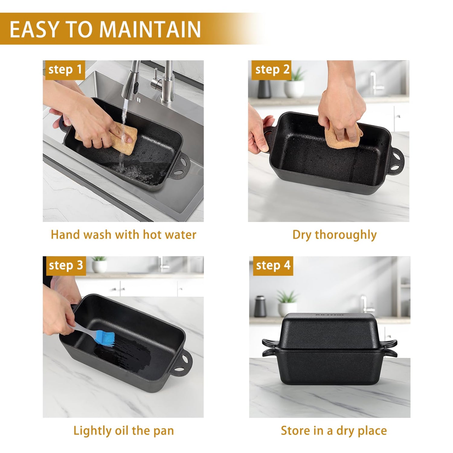- Simple Care: Easy to hand wash, dry, and oil for seasoning; stackable loaf pans for baking bread 9x5 save kitchen space and enhance convenience