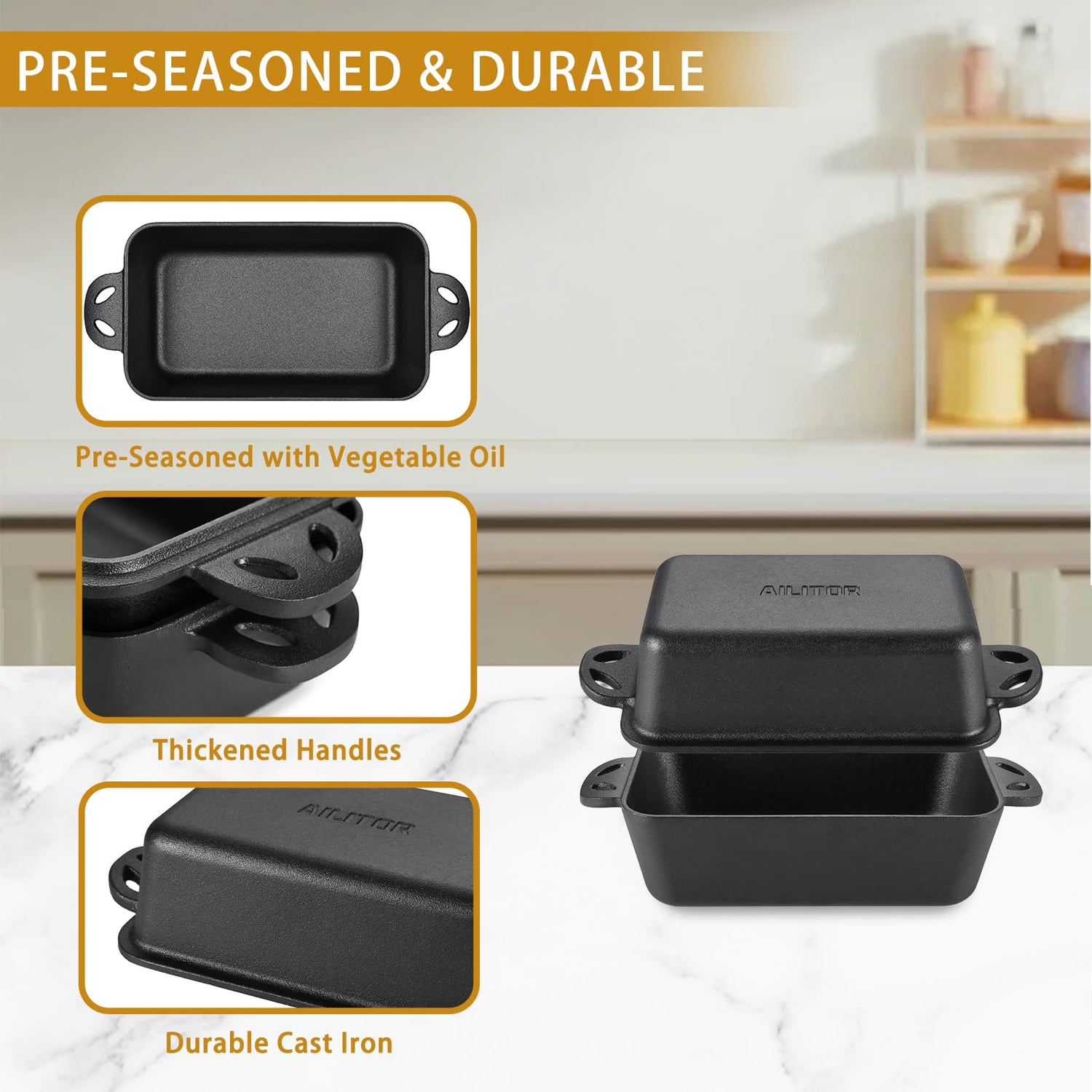 AILITOR Cast Iron Loaf Pan with Lid 9x5 Inch - Bread Baking Pans for Homemade Bread, Set of 2
