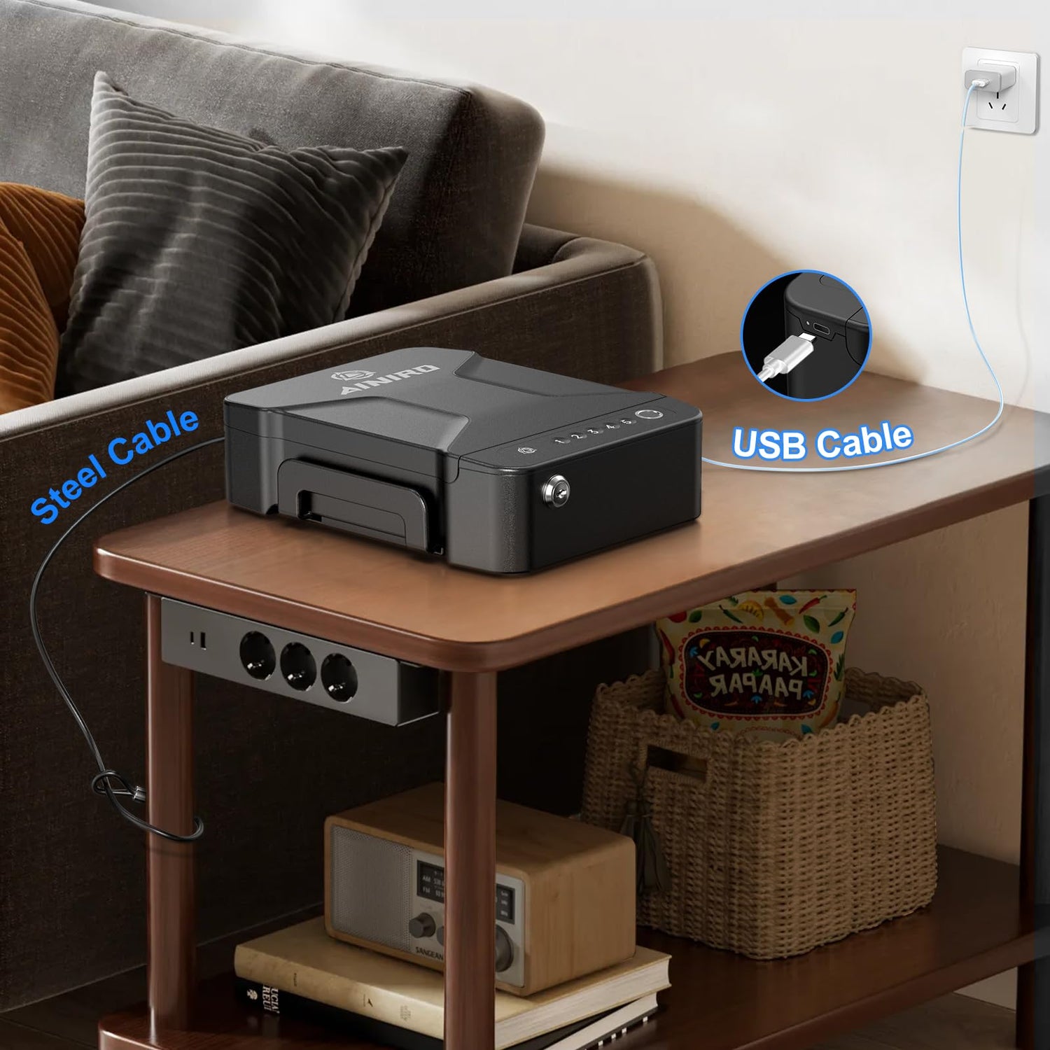 - 【Enhanced Features】The gun safes built-in LED lighting for friendly accessing content in the dark, USB-C charging for convenience, and heavy-duty steel cable for added security. In addition, fingerprint safe also has a mute mode. Designed with user experience in mind, this gun lock box is a reliable option among gun cases for handguns and pistol safes.