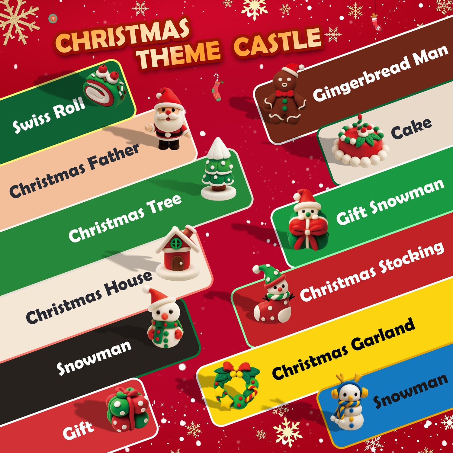 Air Dry Clay Kit - Christmas Theme, Modeling Clay for Kids, DIY Model Magic Clay with Sculpting Tools and Tutorials,12 Boxes Molding Clay, Ultra Light, Soft & Non-Sticky, Arts and Crafts Gift for Kids