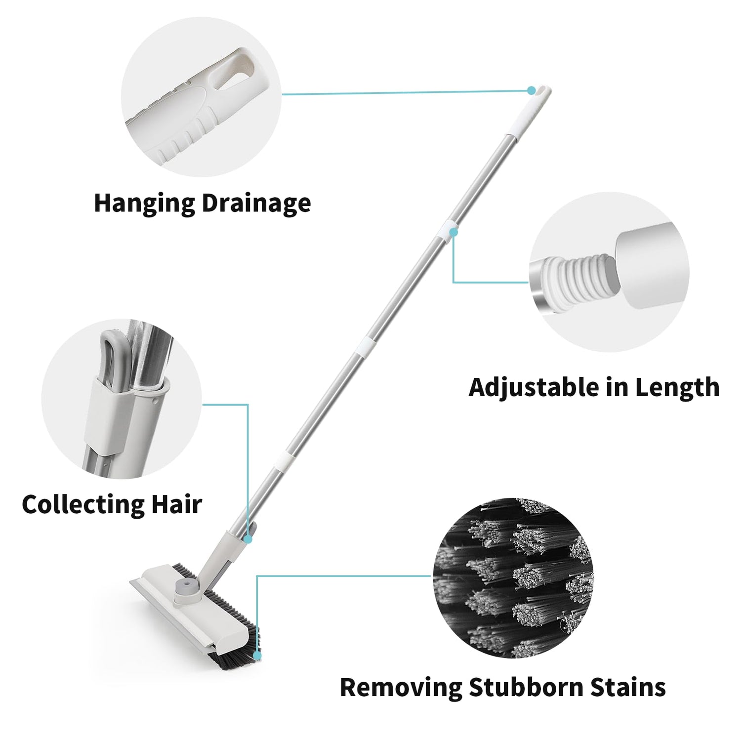 - Floor Scrub Brush with Long Handle: Say goodbye to backaches while cleaning! Our floor scrub brush mop comes with a three-section handle that can be adjusted to your preferred height (30-40-50 inches). No more bending or straining—clean floors comfortably and efficiently