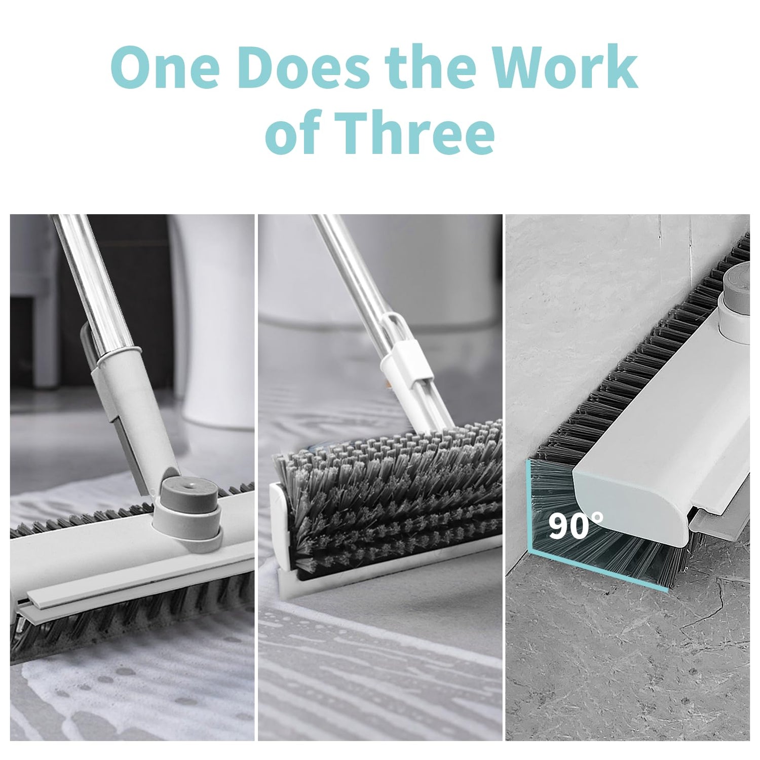 - Versatile Cleaning Companion: Our floor brush with squeegee is a multi-purpose cleaning marvel. It is perfect for dry sweeping and wet mopping, making it suitable for various surfaces such as tile floors, hardwood floors, glass surfaces, and cement floors, uneven or textured surfaces. From bathtubs and bathrooms to kitchens, showers, walls, garages, patios, and even swimming pools, this brush is your go-to solution for a spotless clean