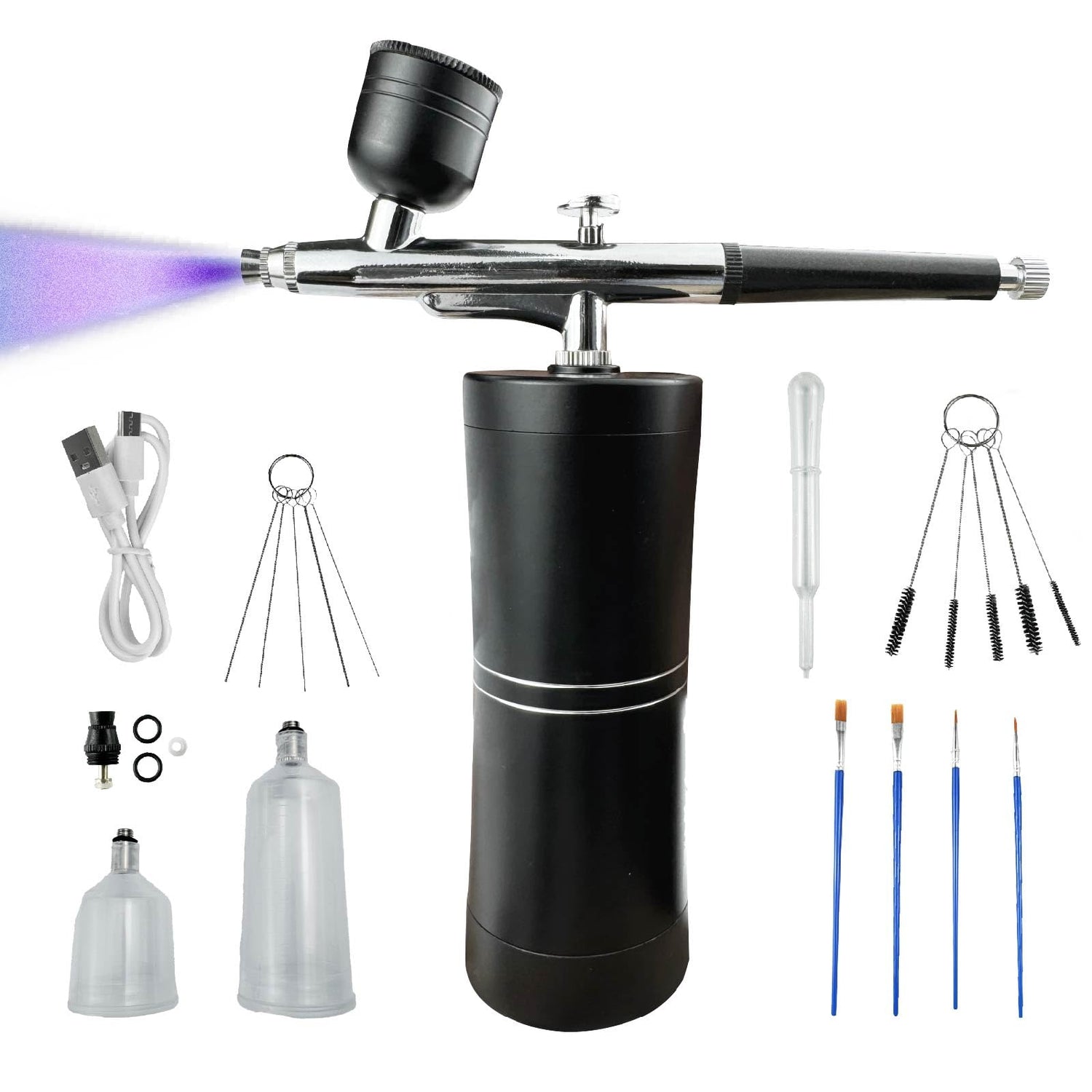 - 【3 Different Capacity Cups】 Our airbrush for nails comes with three different cup sizes - 10CC, 20CC, and 40CC. And 4*paintbrushes and a dropper make it easier to create artwork. Additionally, we provide 5*Cleaning Brushes& 5* Wash Needles for easy maintenance and hassle-free cleaning